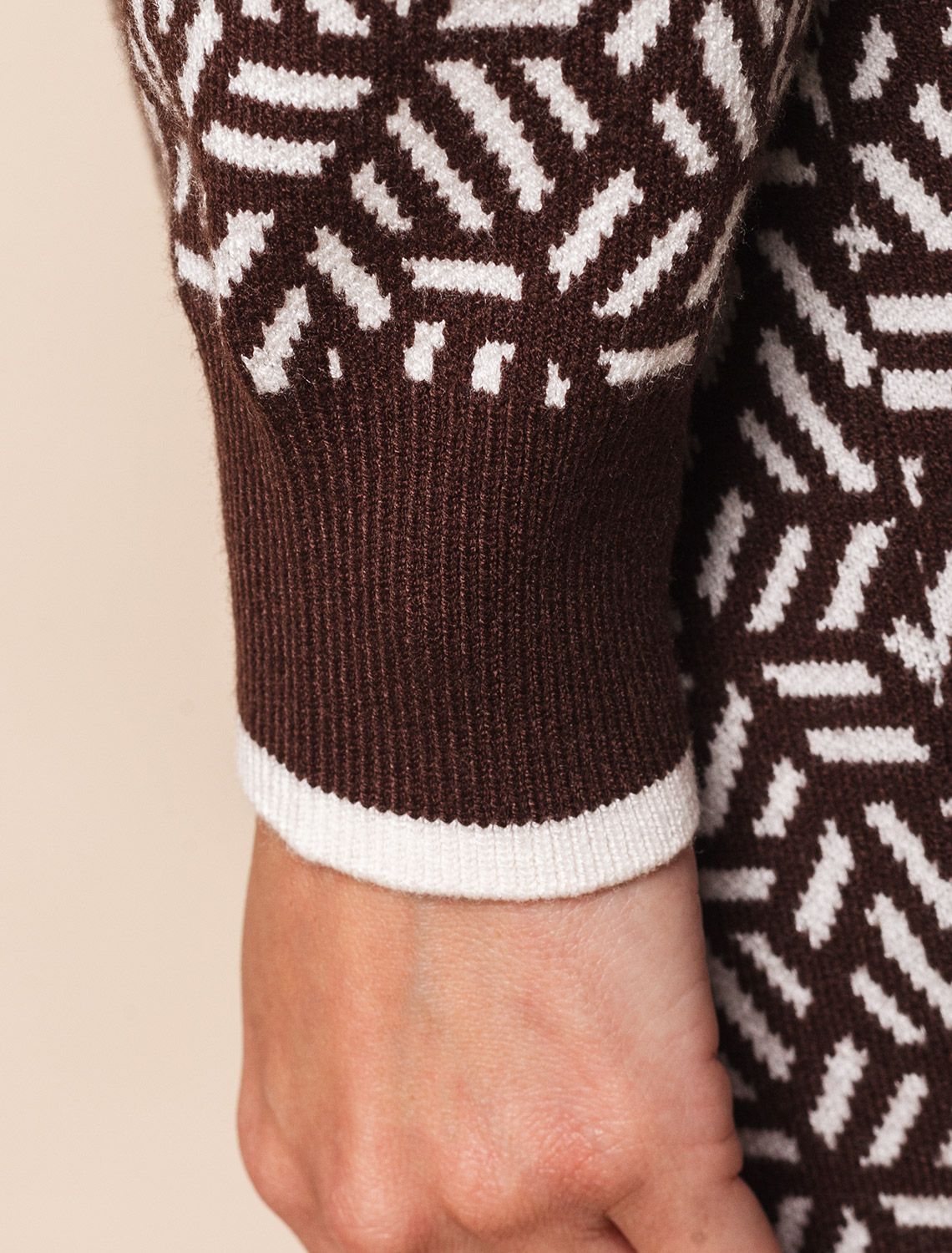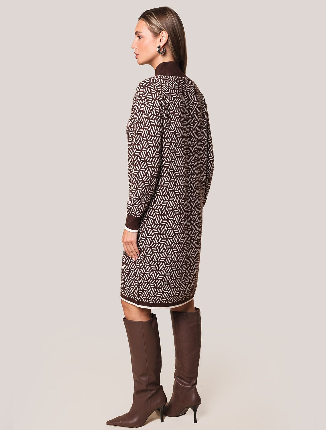 Платье жаккардовой вязки выполнено из мягкой пряжи на основе вискозы с добавлением кашемира. Модель свободного силуэта с высоким воротом и длинным рукавом. Нежная пряжа очень комфортно ощущается на теле, сохраняя оптимальное тепло при этом не перегревая. Совет стилиста: жаккардовое платье отличная инвестиция в базовый гардероб, которая поможет создать дорогие образы. Носите с высокими сапогами удлиняя силуэт или плотными колготками.