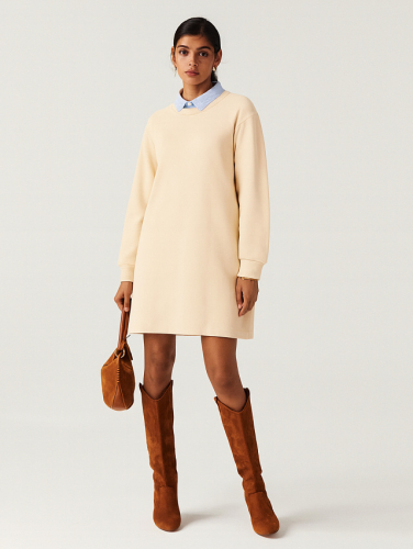 Элегантное женское платье прямого силуэта из трикотажного материала селаник — идеальный выбор для комфортного и стильного образа. Легкая и приятная на ощупь ткань обеспечивает удобство в носке, а продуманный дизайн подчеркивает изящество каждой детали. Округлая горловина украшена рубашечным воротником с отрезной стойкой из поплина, добавляя образу классический акцент. Застежка на пуговицу придает элегантность, а слегка спущенное плечо и углубленная пройма создают комфортную посадку. Длинные рукава с манжетами делают платье универсальным вариантом для прохладной погоды. Длина чуть выше колена позволяет легко сочетать его с ботильонами, сапогами или классическими туфлями. Отличный выбор для деловых встреч, прогулок, работы и особых случаев — это платье сочетает удобство, стиль и безупречное качество!