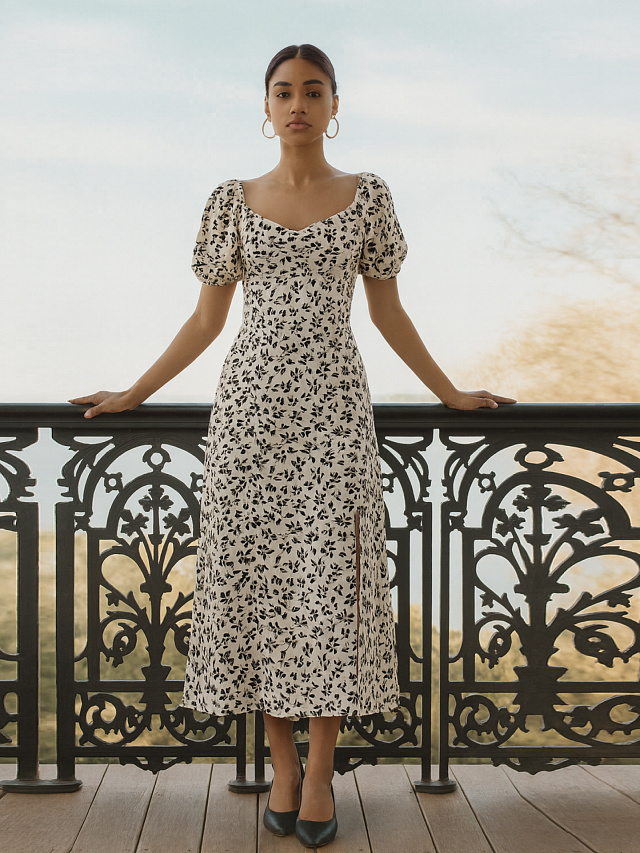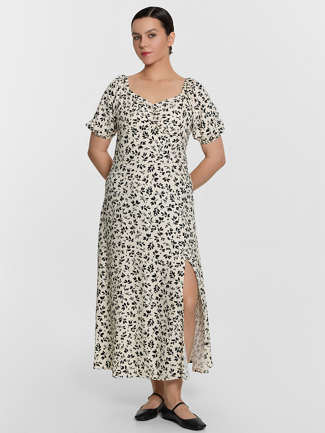 Платье женское бежевое с цветочным принтом