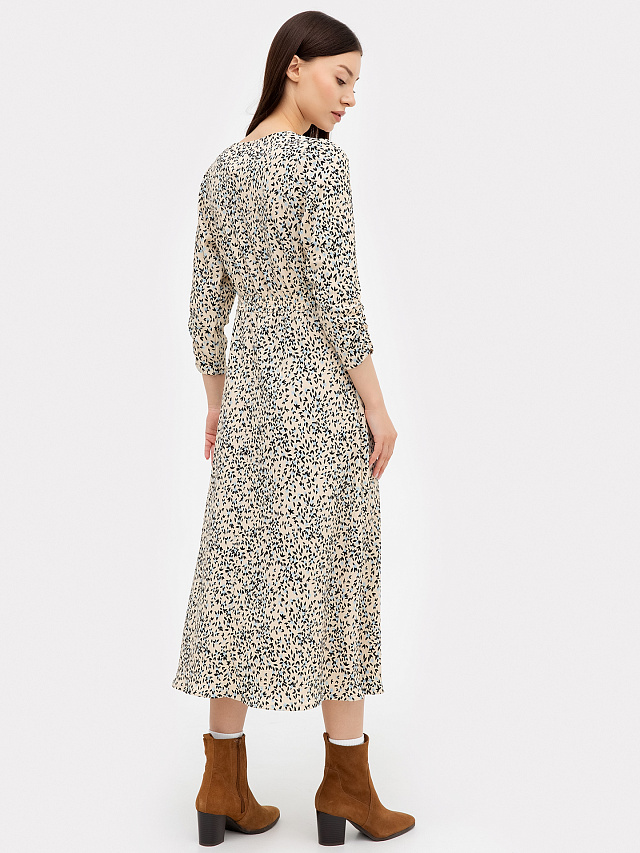 Стильное длинное платье полуприлегающего силуэта из высококачественного материала. Мягкое и приятное на ощупь, очень комфортное в носке. Горловина V-образной формы. Платье отрезное по талии, с эластичной тесьмой внутри. Рукав втачной, длина рукава 3/4, по низу рукава настрочена эластичная тесьма которая делает сборку. Низ платья расширяется к низу. Женственная модель для создания красивых образов на работу, учебу и шоппинг с подругами. Широкий размерный и цветовой ряд. Рекомендуем!