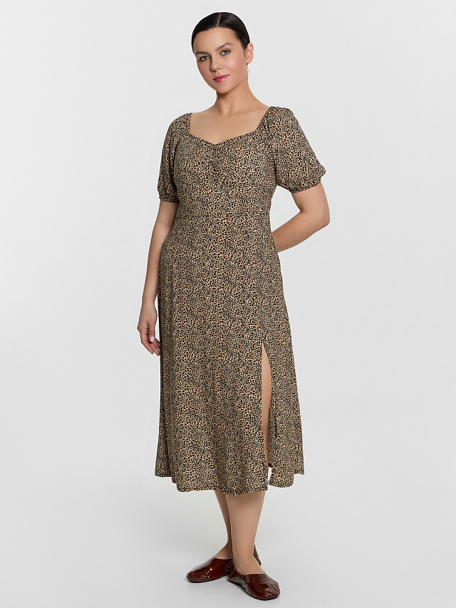Платье женское бежевое с леопардовым принтом