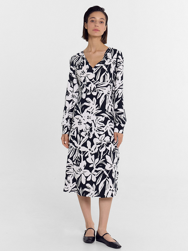 Элегантное платье женское полуприлегающего силуэта из 100% вискозы. Модель акцентирует внимание на талии. Вырез v-образный, с отрезным лифом и сборками по поясу. Рукава длинные, с манжетами и сборками. Длина модели ниже колена, силуэт к низу расширяется. Стильное платье отлично подойдет для работы, учебы и в качестве варианта на каждый день. Представлено в нескольких расцветках. Идеальное для весенне-летнего сезона, осени и демисезона. Выбирайте и сочетайте его с обувью и аксессуарами, создавая стильный и современный look. Мы уверены, что оно станет вашим любимым. Рекомендуем!