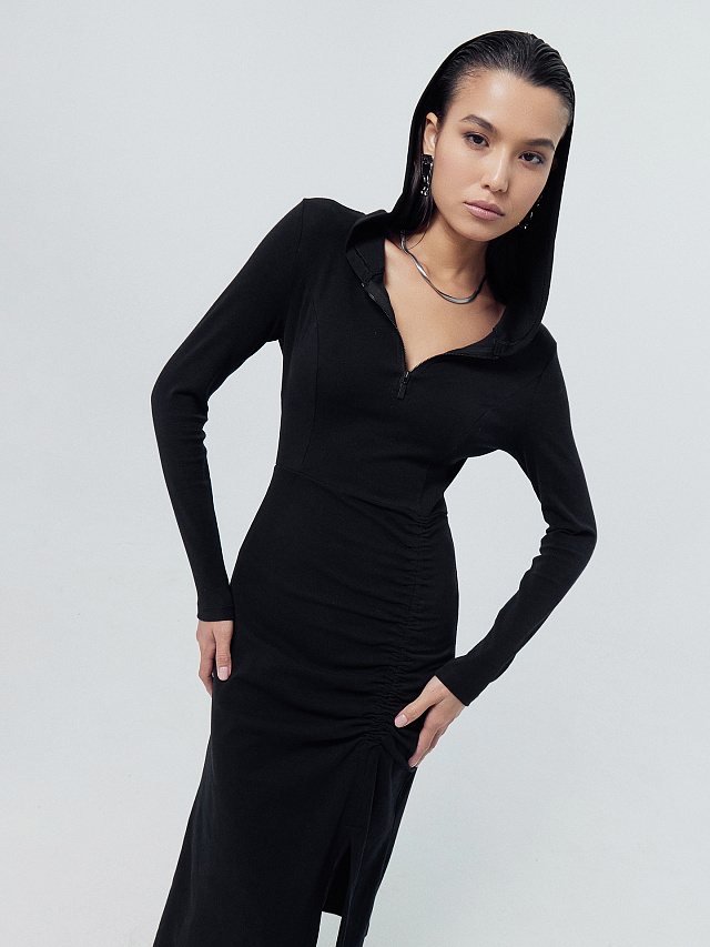 ПЛАТЬЕ ЖЕНСКОЕ ЧЕРНОЕ С РАЗРЕЗОМ НА НОГЕ