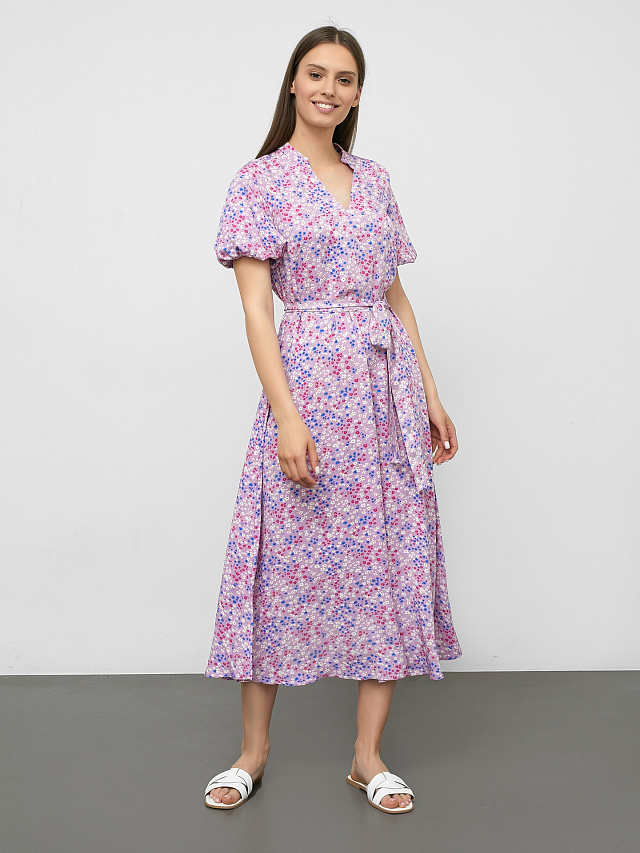 Платье женское миди из вискозы в лавандовом оттенке с цветочным принтом