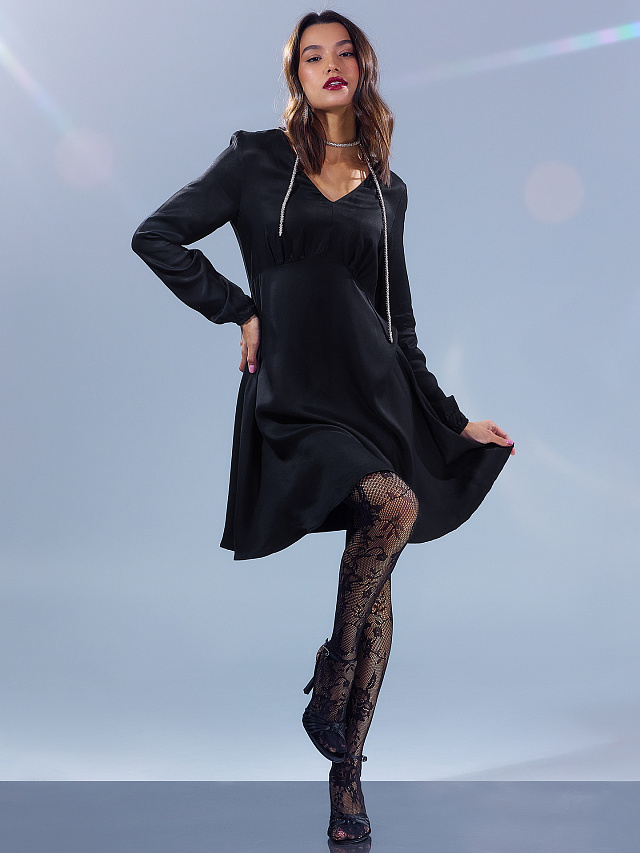 Изящное женское платье — настоящая находка для модниц, которые хотят выглядеть стильно и элегантно каждый день. Силуэт модели полуприлегающий, он постепенно расширяется книзу, что позволяет скрыть некоторые недостатки фигуры и подчеркнуть ее достоинства. Длина платья чуть выше колена, что делает его универсальным и позволяет носить как с каблуками, так и с плоскими туфлями или кедами. Модель отрезная по линии талии, что позволяет подчеркнуть женственную линию талии. Под грудью проходит фигурнаялиния, что делает модель еще более интересной и оригинальной. Вырез горловины V-образный. Рукава длинные, украшены небольшими сборками и чуть расширяются к низу. Платье представлено в нескольких цветах, что позволяет выбрать модель на любой вкус. В составе изделия присутствует вискоза, что делает платье невероятно воздушным и приятным на ощупь. Не упустите шанс приобрести это универсальное и стильное платье для создания разнообразных аутфитов на каждый день. Оно позволит выглядеть элегантно, женственно и подчеркнет все ваши достоинства!