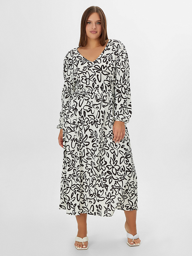 Элегантное длинное платье Mark Formelle станет стильным и универсальным дополнением вашего гардероба! Модель полуприлегающего силуэта сочетает в себе комфорт и изысканный дизайн, подходящий для различных случаев. Платье имеет V-образный вырез горловины, который подчеркивает линию шеи и декольте, добавляя нотку изящества. Эластичная сборка на талии создает акцент на фигуре, а длинные рукава с эластичной сборкой по краю придают нежности и утонченности. Расширяющийся к низу крой добавляет грациозности и движения, создавая великолепный силуэт. Изделие выполнено из ткани рашель, известной своей легкостью и эластичностью. Такой материал отличается нежностью и изысканным внешним видом, что делает его идеальным для создания элегантных и комфортных нарядов. Это платье станет удачным выбором как для повседневных образов, так и для торжественных мероприятий, подчеркивая ваш стиль и женственность. Рекомендуем!