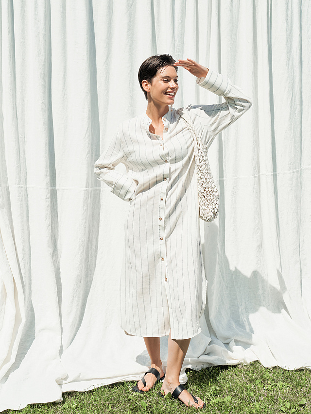 Элегантное и практичное платье из премиального льна и района станет отличным выбором для жарких летних дней. Легкая ткань обеспечит максимальный комфорт и свободу движений. Натуральное льняное волокно обладает превосходными дышащими свойствами, что делает эту модель идеальной для жары. Свободный силуэт и длина ниже колена выглядят стильно и модно. Длинные рукава с манжетами гарантируют защиту от палящего солнца. Платье имеет горловину круглой формы с отрезной стойкой. Низ изделия фигурный, по бокам - функциональные карманы. Благодаря простому, лаконичному дизайну, оно легко комбинируется с самыми разными аксессуарами. Широкий размерный ряд. Лучший вариант как для прогулок, так и для семейных торжеств или отпускных поездок.
