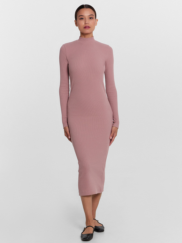 Однотонное платье женское с длинными рукавами, прилегающего силуэта из высококачественного хлопка в рубчик. Вырез круглый, с воротником-стойкой. Рукава длинные, облегающие. Длина модели чуть ниже колена. Отличное базовое платье, которое станет основой вашего стильного образа. Такое платье точно не будет ждать своего часа на полке в шкафу. В осенне-зимний период так хочется надеть что-то максимально комфортное и уютное - эта модель именно такой вариант. Облегающее платье не стесняет движений, очень комфортное в носке. Идеально подойдет для прогулок, встреч с друзьями, свидания и похода в кино. Рекомендуем!