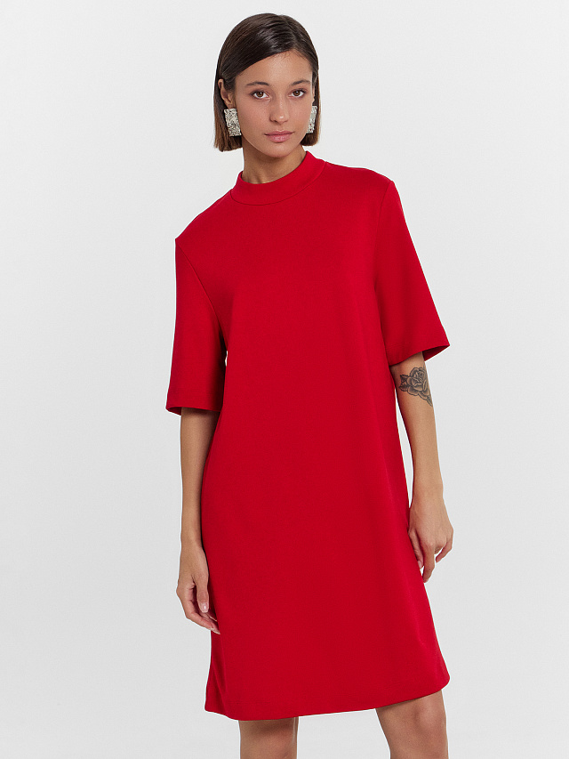 Это женское платье создано для тех, кто ценит стиль и удобство. Выполненное в элегантном А-силуэте. Круглая горловина с воротником-стойкой придает образу изысканную строгость, а слегка спущенное плечо и короткий рукав добавляют ему женственности. Сзади платье дополнено средним швом и застежкой на потайную молнию. Высококачественный материал - вискоза, из которого изготовлено платье, обладает отличными воздухопроницаемыми свойствами, позволяя коже дышать. Мягкая, приятная на ощупь ткань не сковывает движений, дарит ощущение комфорта на протяжении всего дня. Лаконичный дизайн и отсутствие лишних деталей делают это платье женское универсальным. Оно одинаково уместно и в офисе, и на прогулке, и на любом мероприятии. Простота кроя позволяет сочетать его с самыми разными аксессуарами, создавая гармоничные образы. Рекомендуем!