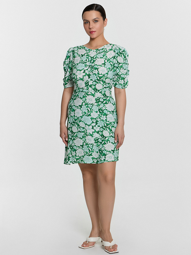 Платье женское зеленое с цветочным принтом