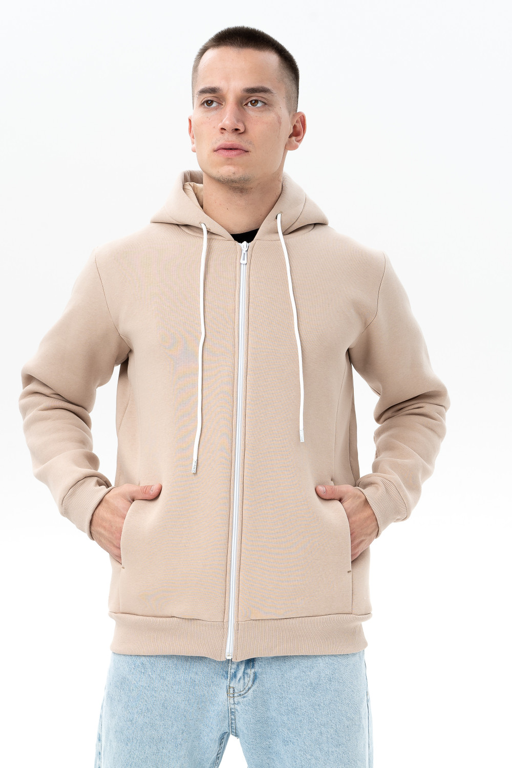 Куртка из мягкого хлопкового футера с начёсом имеет капюшон, карманы и широкие манжеты на рукавах, благодаря чему модель прекрасно сохраняет тепло тела. Рукава втачные. Молния и мягкая утепленная изнанка – составляющие городского стиля и повышенного комфорта. Идеальный вариант для тех, кто любит изделия с молнией.