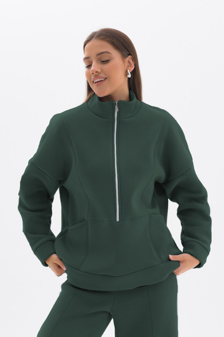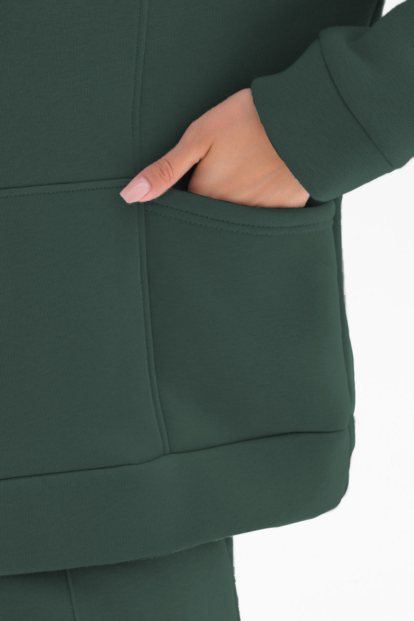 Теплый и комфортный свитшот из футера с начёсoм всегда будет актуальным и располагающим к себе. Он обречен стать любимой одеждой, которую не захочется снимать. Мягкая основа с начесом на изнанке создает особый микроклимат и не пропускает холод. Свитшот не вытягивается, не линяет и выдерживает многократные стирки. Изделие оверсайз-силуэта имеет прямой крой, спущенную линию плеча, длинные рукава. Вместительные карманы согреют руки в самый холодный день. Воротник, низ и манжеты выполнены из основного полотна, фиксирующей объем. Свободный объём не стесняет движений и комфортно садится по фигуре.