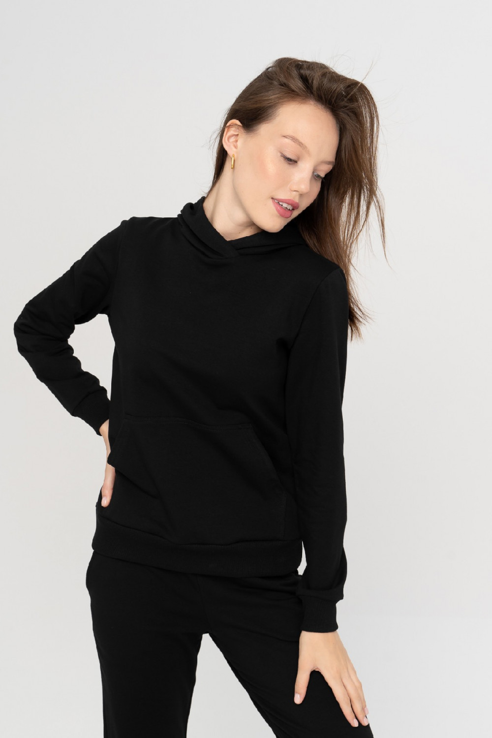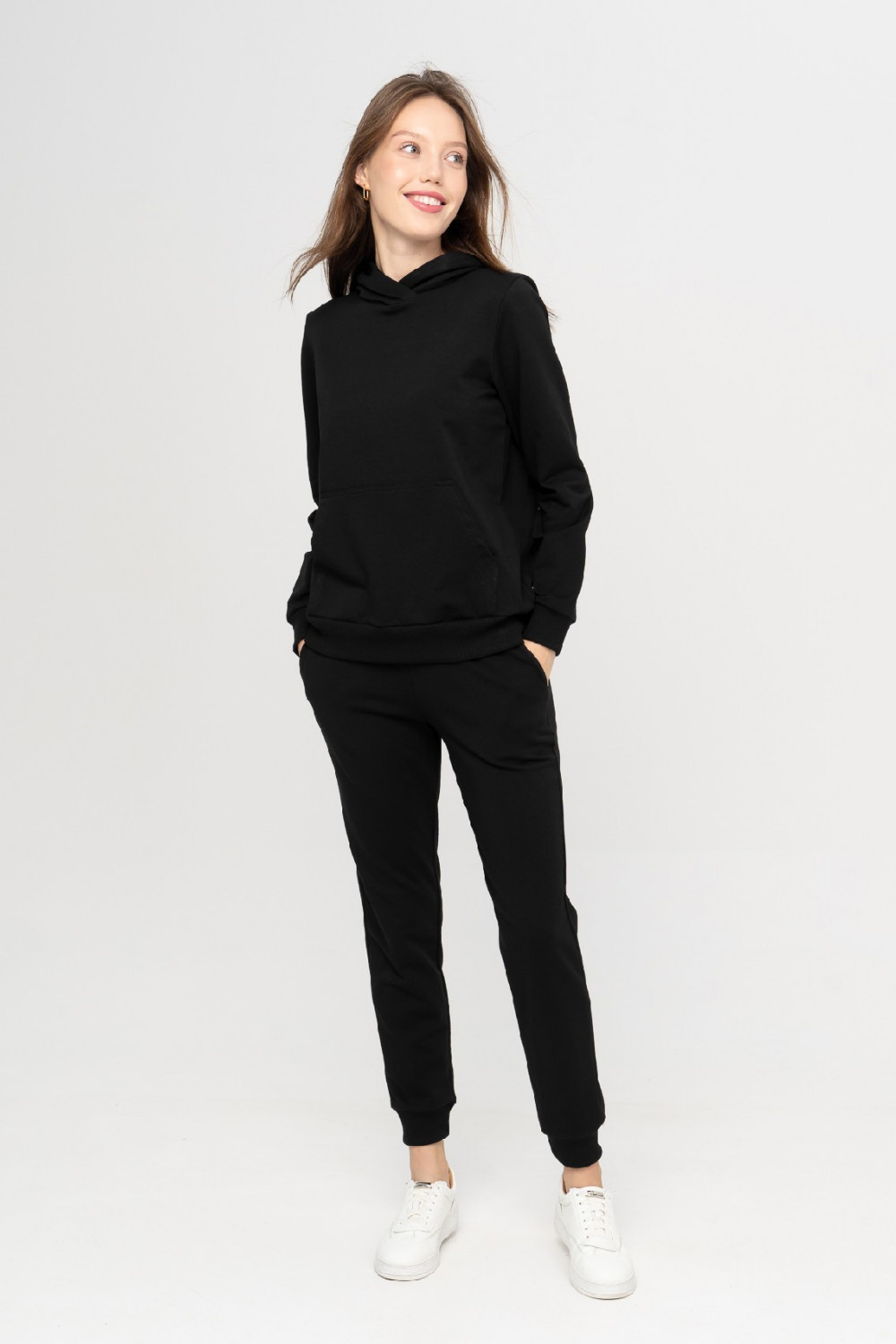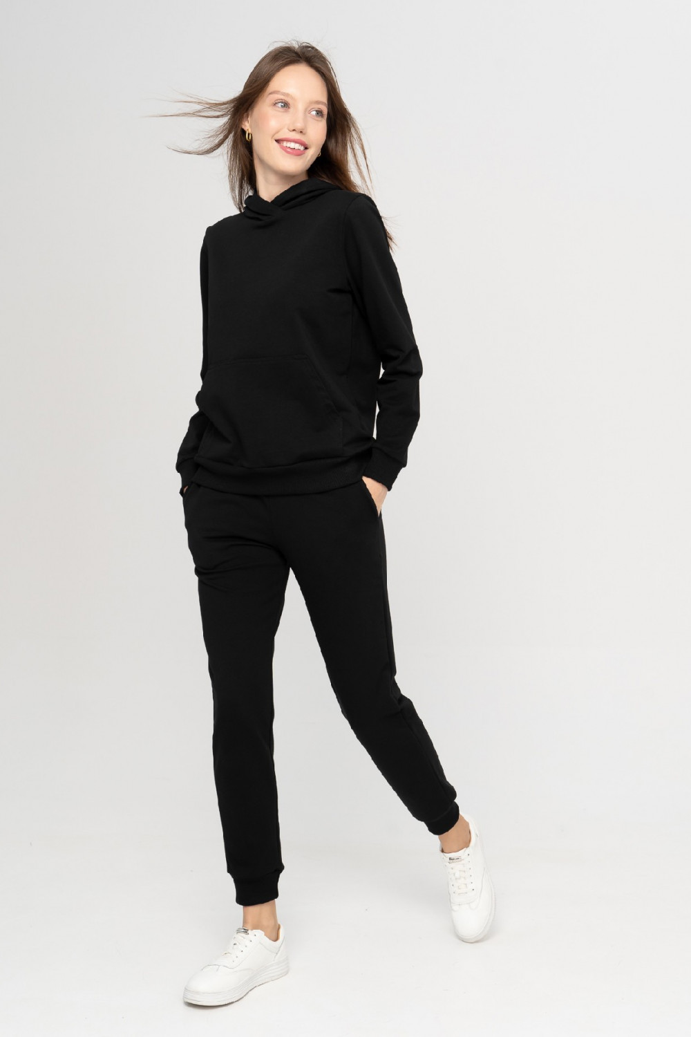 Мягкий уютный костюм из хлопкового футера– это must have для каждой девушки. Худи с втачным рукавом, капюшоном и карманом «кенгуру». Рукава и брюки имеет широкие манжеты из кашкорсе лайкрой, благодаря чему модель прекрасно сохраняет тепло тела, это идеальный вариант осенне-зимнего образа, а также на прохладное лето. Брюки имеют удобные карманы. Замечать на себе трепетные взгляды мужчин – это всегда приятно. Это делает нас ещё привлекательнее и увереннее в себе. Наш стильный костюм, вопреки всей теплой одежде, которая прячет красоту женского тела, выделяет её и обеспечивает вас теплом на время прогулки. Очень удобный костюм для свободного времяпрепровождения.