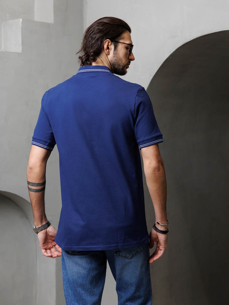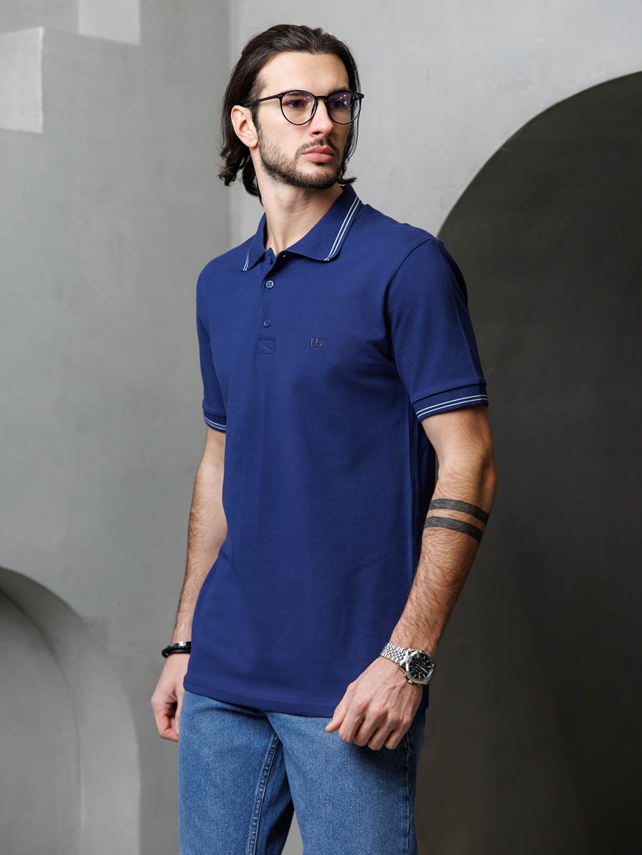 Классическая мужская футболка поло F5, Regular fit (полуприлегающий силуэт), с вышивкой-фирменным логотипом. Выполнена из трикотажного полотна пике (pique). С отложным воротником и короткими рукавами. Застежка-планка обработана пике  контрастного цвета, застегивается на 3 пуговицы. 100%Хлопок