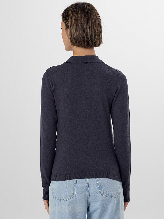 Женское поло с длинным рукавом объединяет в себе элегантность повседневного стиля и комфорт. Классический воротник и застежка на пять пуговиц создают аккуратный, выразительный силуэт, который уместен и в офисе, и на прогулке, и на дружеской встрече. Модель выполнена из особой смеси вискозы и нейлона — это сочетание дарит мягкость и легкий шелковистый блеск, при этом ткань достаточно упругая, чтобы хорошо держать форму.