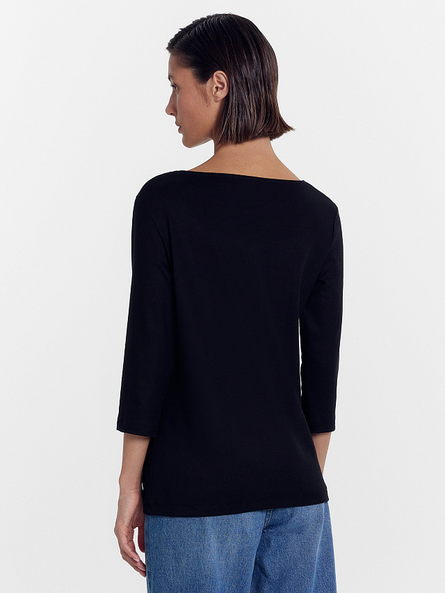 Легкий джемпер из трикотажного полотна кулирного переплетения. Длина до середины бедра, силуэт полуприлегающий, горловина круглой формы, рукава длиной 3/4. Актуальный крой и универсальность поможет вам собрать современный образ, приложив минимум усилий.