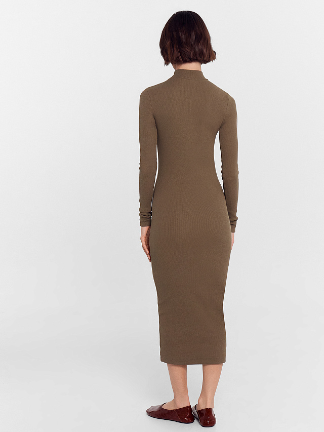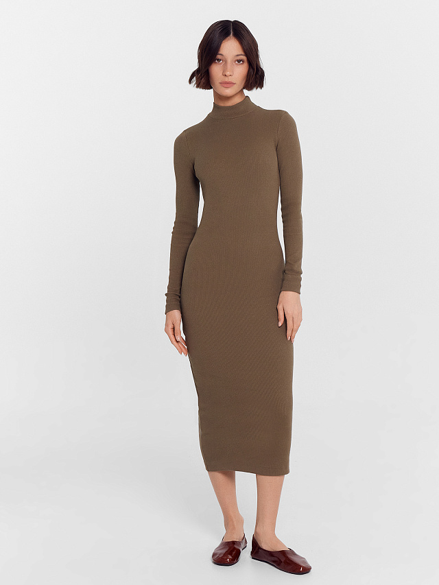 Однотонное женское платье с длинными рукавами и прилегающим силуэтом - идеальный выбор для тех, кто ценит сочетание комфорта и стиля. Выполненное из высококачественного хлопка в рубчик, оно обладает отличной воздухопроницаемостью и мягкостью, обеспечивая удобство и уют в любую погоду. Круглый вырез с воротником-стойкой и облегающие длинные рукава придают платью элегантность и сдержанную изысканность. Длина чуть ниже колена делает эту модель универсальной и подходящей для различных ситуаций. Это базовое платье станет основой вашего гардероба, добавляя нотку женственности и стиля в осенне-зимний период, когда хочется надеть что-то максимально комфортное и уютное. Оно идеально подходит для прогулок, встреч с друзьями, свидания или похода в кино. Платье представлено в широкой цветовой палитре, легко комбинируется с аксессуарами и обувью, что позволяет создавать разнообразные образы. Это универсальное изделие прекрасно подойдет для офисных и городских образов, став незаменимым элементом вашего повседневного гардероба.