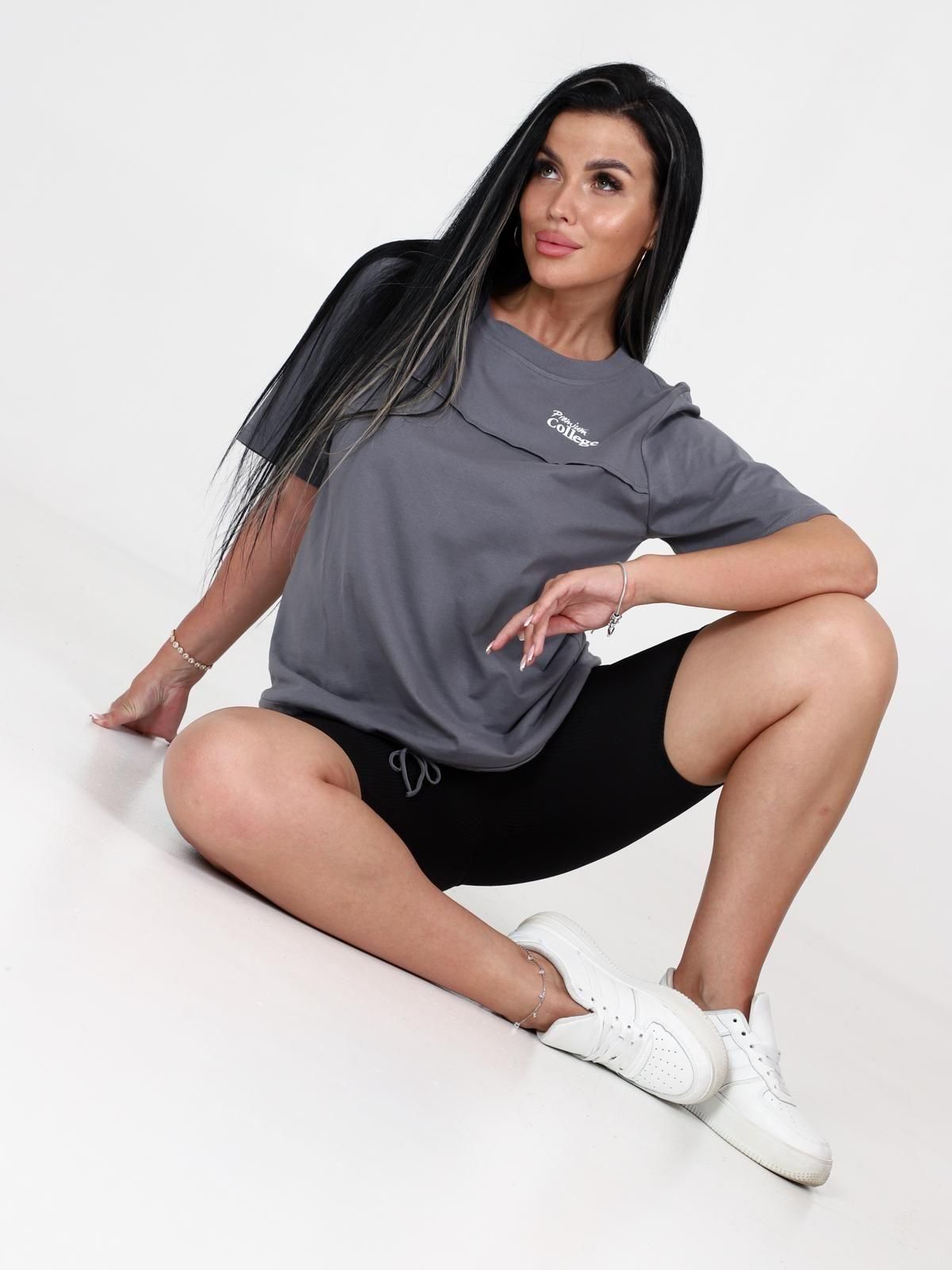 Базовая трикотажная футболка на каждый день. Отлично садится по фигуре любой комплектации. Модель прямого силуэта, с коротким рукавом, длиной до уровня бедер, по низу изделия утягивающая кулиска с завязками. Хорошо сочетается с любой одеждой.
