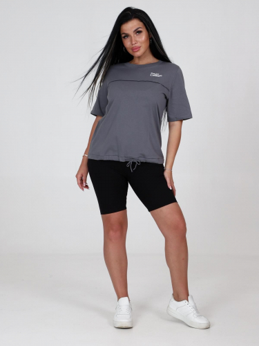 Базовая трикотажная футболка на каждый день. Отлично садится по фигуре любой комплектации. Модель прямого силуэта, с коротким рукавом, длиной до уровня бедер, по низу изделия утягивающая кулиска с завязками. Хорошо сочетается с любой одеждой.