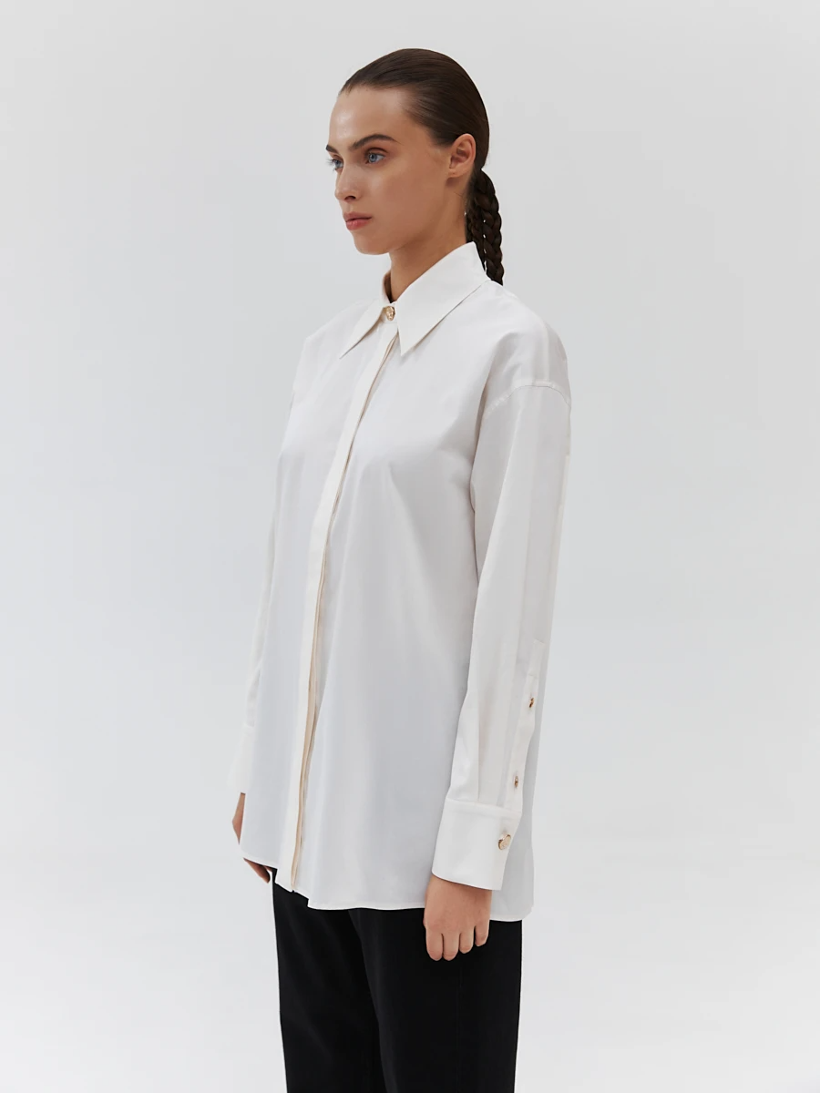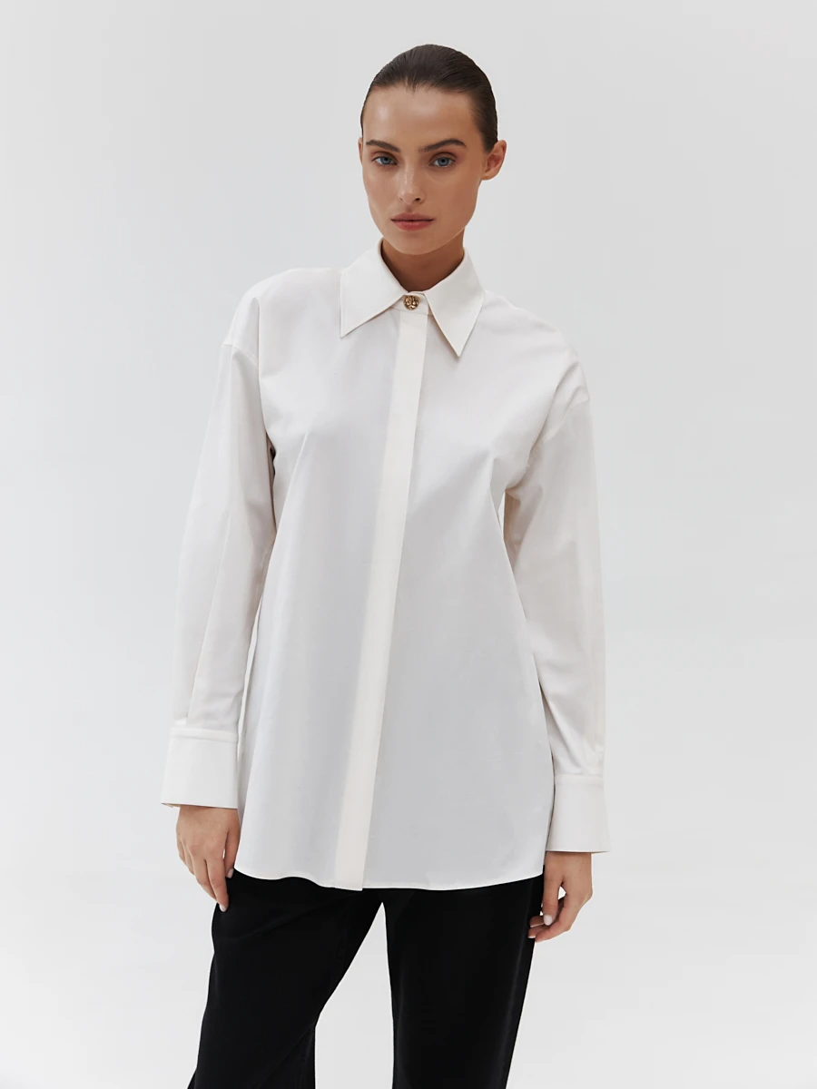 Прямая свободная рубашка Молочный 51.110.9038.007.1