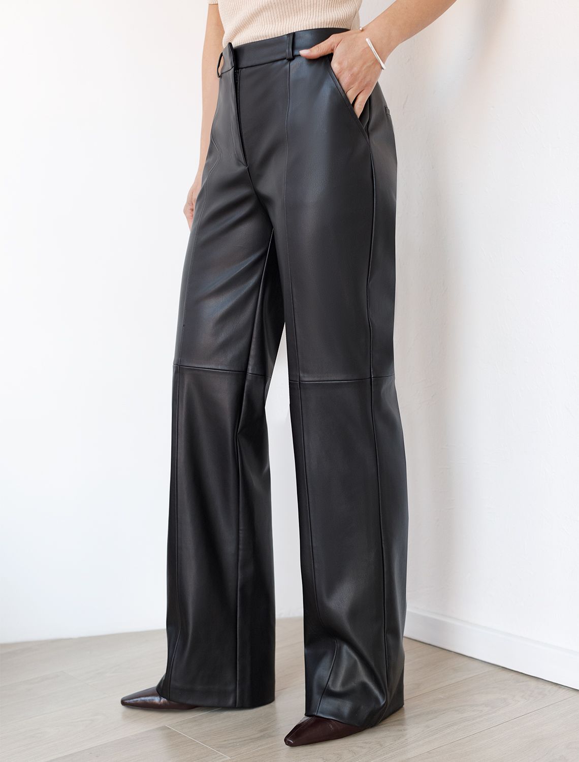 Прямые брюки из искусственной кожи