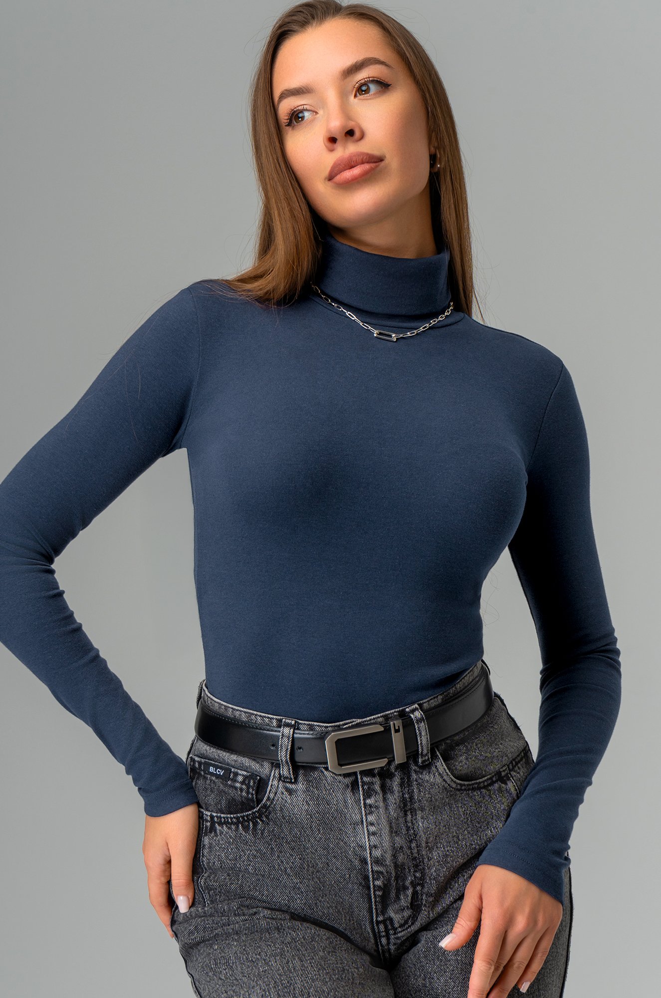 Комфорт с первого прикосновения! Женск..показатьая водолазка из хлопковой рибаны подарит мягкость и уют на каждый день. Высокий ворот, длинные рукава и универсальный синий цвет делают этот базовый лонг незаменимым в гардеробе.