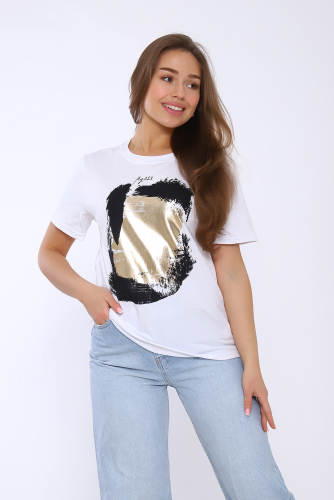 Яркая футболка с крупным печатным принтом, абсолютно, не оставит Вас незамеченной. Модель выполнена в сочном насыщенном цвете, что актуально для текущего сезона. Рукав короткий. Вырез горловины округлый. Материал - мягкое и эластичное трикотажное полотно. Состав: 100% хлопок. Длина изделия 68 см. Рост модели на фото 173 см