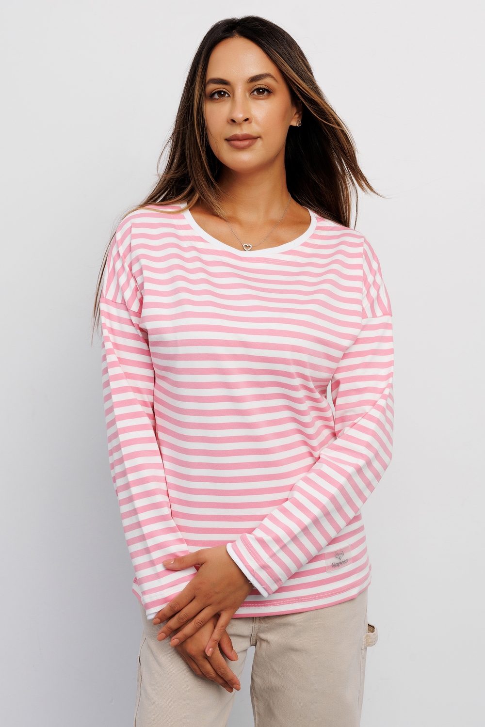 Футболка женская от бренда Raposa воплощает идеальное сочетание комфорта, качества и стиля. Красивая тельняшка выполнена из хлопка с добавлением лайкры, что обеспечивает комфортную посадку по фигуре и сохраняет форму. Эта полосатая кофта является идеальным вариантом для всех модных женщин, стремящихся выглядеть стильно и чувствовать себя при этом комфортно. Голубой полосатый принт придает трикотажной кофте нежность и женственность, прекрасно сочетаясь с любым другим оттенком. Модный свободный крой оверсайз и спущенное плечо позволяет создавать с базовым лонгсливом множество стильных образов - от повседневных до офисных. Модель легко комбинировать с любыми вещами молодежного гардероба женщины или подростка, широкий размерный ряд включает большие размеры. Эта хлопковая футболка мягкая и плотная имеет длинный рукав, что делает ее идеальной для прохладных весенних и осенних дней.