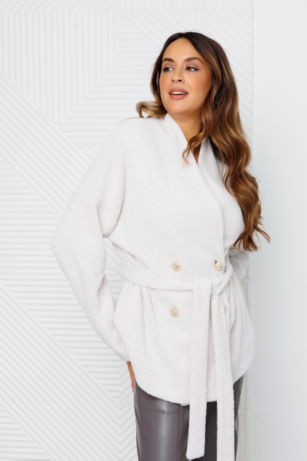 Кардиган женский Raposa - это трендовое и комфортное решение для прохладной осенней погоды. Удлиненный крой оверсайз в сочетании с мягким, пушистым материалом из евро ангоры и вискозы создает ощущение тепла и уюта. Серый кардиган двубортный на запах с поясом и на пуговицах подчеркивает женственную фигуру, выстраивает приталенный силуэт и позволяет регулировать посадку по фигуре. Акцентный воротник кимоно придает кардигану олд мани old money элегантный вид, а золотые пуговицы добавляют изюминку. Благодаря универсальному бежевому цвету и лаконичному рисунку кардиган легко впишется в любой гардероб. Кардиган плюшевый подойдет как офисный вариант, так и для повседневных образов, а благодаря своей универсальности, может быть использован как кофта с длинным рукавом, пиджак, жакет или даже легкое пальто. Кардиган осенний трикотажный можно комбинировать с любыми вещами Вашего гардероба, создавая как классические, так и более смелые кэжуал casual образы. Кардиган теплый уютный в елочку на осень зиму 2025 2026 идеально подойдет для высоких и невысоких, для девочки подростка в школу, а также для беременных будущих мам и полных женщин больших размеров плюс сайз plus size до 56 и 58 размера. Кардиган шерсть ангора стильный достойно представляет российское производство и создает визуальный эффект кардиган из альпаки. Кофточка Raposa станет незаменимой для модных аутфитов как накидка на платье. Цвет: беж,сер; Материал: евроангора;евроангора; Состав: 40% евро ангора, 40% п/э, 20% вискоза.