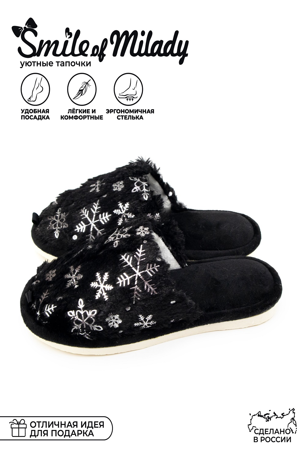 Комнатные женские тапочки от бренда Smile of Milady - стильная и комфортная домашняя обувь. В этих велюровых закрытых тапках нога отдыхает после насыщенных рабочих будней и активных выходных. Модель теплая, пригодится в межсезонье и зиму.Мягкие домашние сланцы можно взять с собой в путешествие, в командировку, на дачу.Запасите несколько пар для гостей.Шлепанцы для женщин подойдут на широкую ногу, полную стопу. Шлепки имеют гибкую подошву из экологичного материала эва (eva). Она не скользит, достаточно мягкая и прочная, обеспечит амортизирующий эффект, снижающий усталость ног.Это красивая дизайнерская домашняя обувь, в которой приятно проводить время и заниматься делами. В каталоге представлен большой выбор расцветок, чтобы Вы смогли выбрать те, которые понравятся на 100%. В таблице размеров указана длина стопы, используйте этот параметр, что верно определить нужный размер.