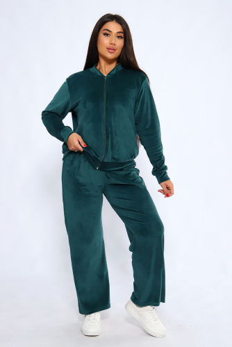 Костюм женский из мягкого велюра состоит из брюк и бомбера. Брюки имеют идеальную посадку, бомбер свободного кроя. Костюм идеально подойдет как для дома, так и для отдыха и прогулок.