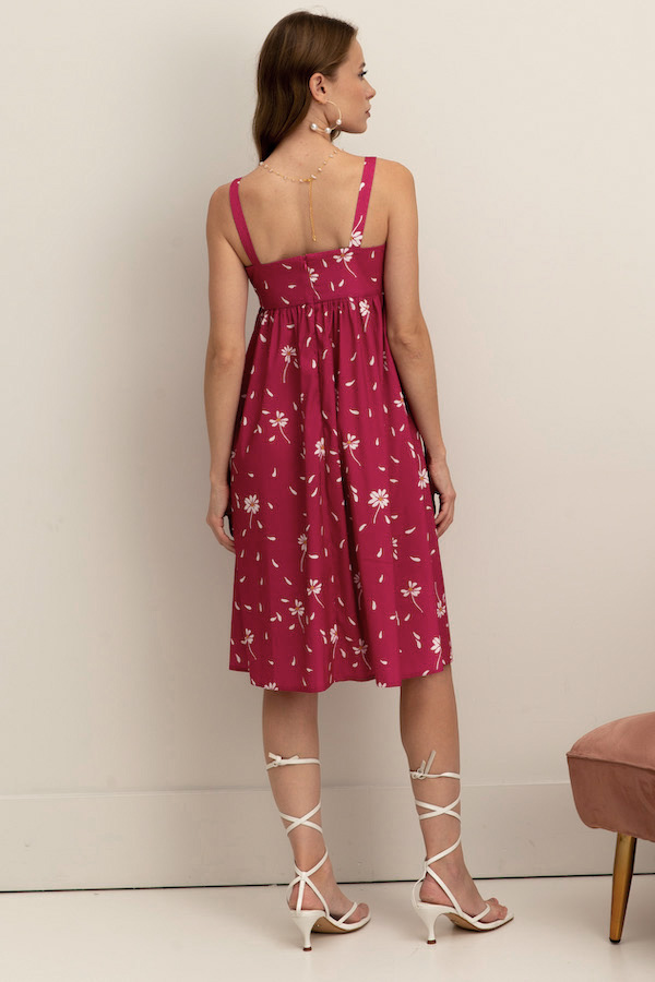 Платье на бретелях из вискозной, плательной ткани. Изделие, прилегающее в области груди и свободное в области бедер. Лиф двухслойный с красивым женственным вырезом. Верхняя часть переда отрезная под линией груди, с фигурными подрезами. На спинке застежка-молния. В таблице размеров представлены параметры человека, а не изделия.