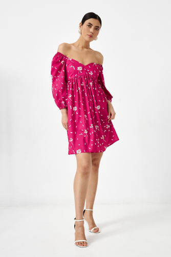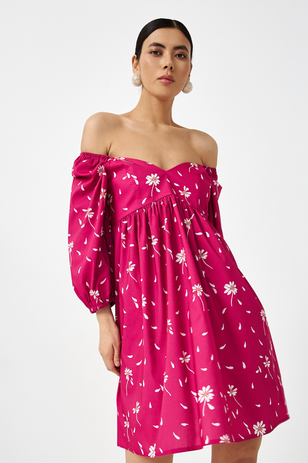 Платье свободного силуэта из вискозной ткани. Изделие отрезное по линии талии. Линия талия завышена и фигурная. Верхняя часть юбки со сборкой. По среднему шву спинки потайная молния. Лиф переда и спинки двухслойный, имеет рельефные швы. Окат рукава и низ рукава зафиксированы резиной.