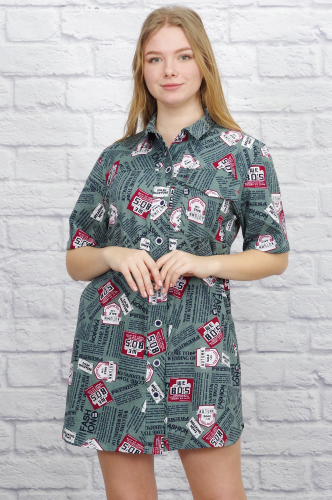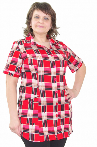 Женская рубашка-туника в клетку с накладными карманами на кулиске. Ткань кулирка.