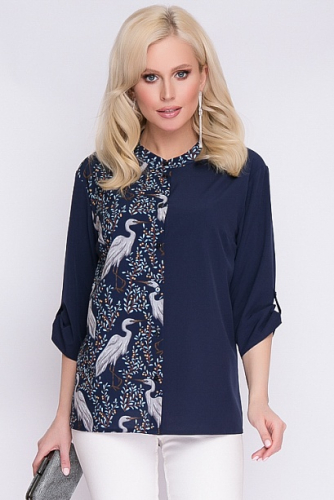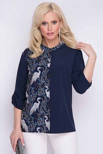 Комбинированная рубашка из текстильного полотна.Воротник-стойка.