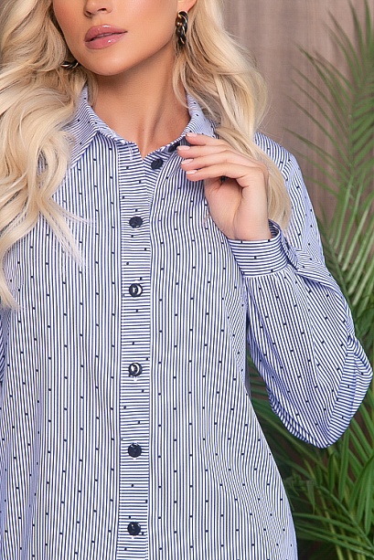 Рубашка свободного силуэта из комфортного хлопка тексель с центральной застежкой на пуговицы.Воротник отложной на стойке.