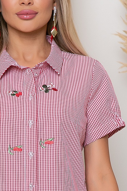 Рубашка из текстильного полотна с хлопком в мелкую клеточку с вышивкой.
