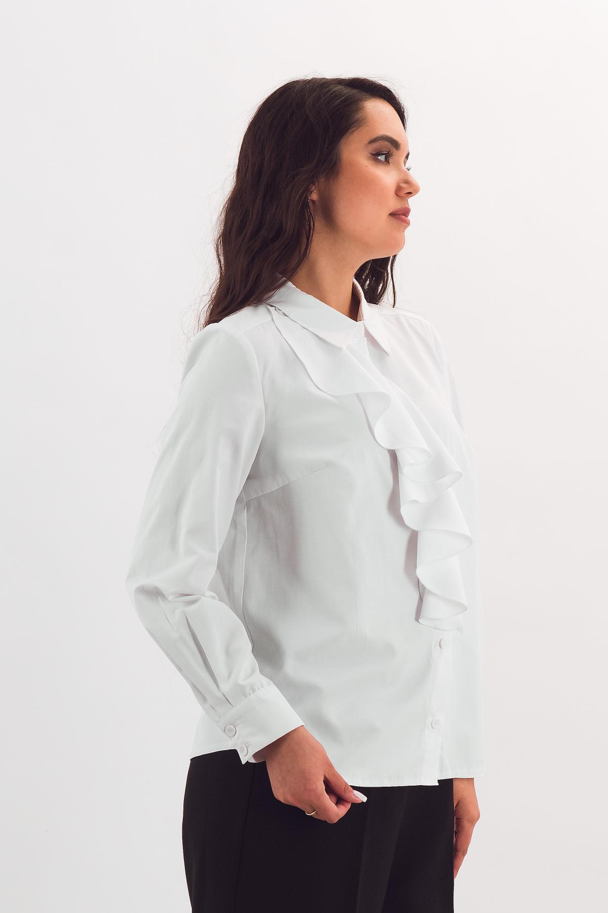 Описание: Универсальная базовая модель рубашки дополненная оригинальным съёмным жабо, поможет создать стильный образ! Модный объем и прямой силуэт благодаря проработанным лекалам подойдёт для любой фигуры. Длинный и широкий рукав со складками и манжетами на пуговицах позволяет регулировать объем, также его можно закатать, что придаст рубашке менее формальный вид. Благодаря галстуку, который вдевается в петельку на стойкее воротника, рубашка подходит для любого случая, будь то офис, школа, деловая или неформальная встреча.