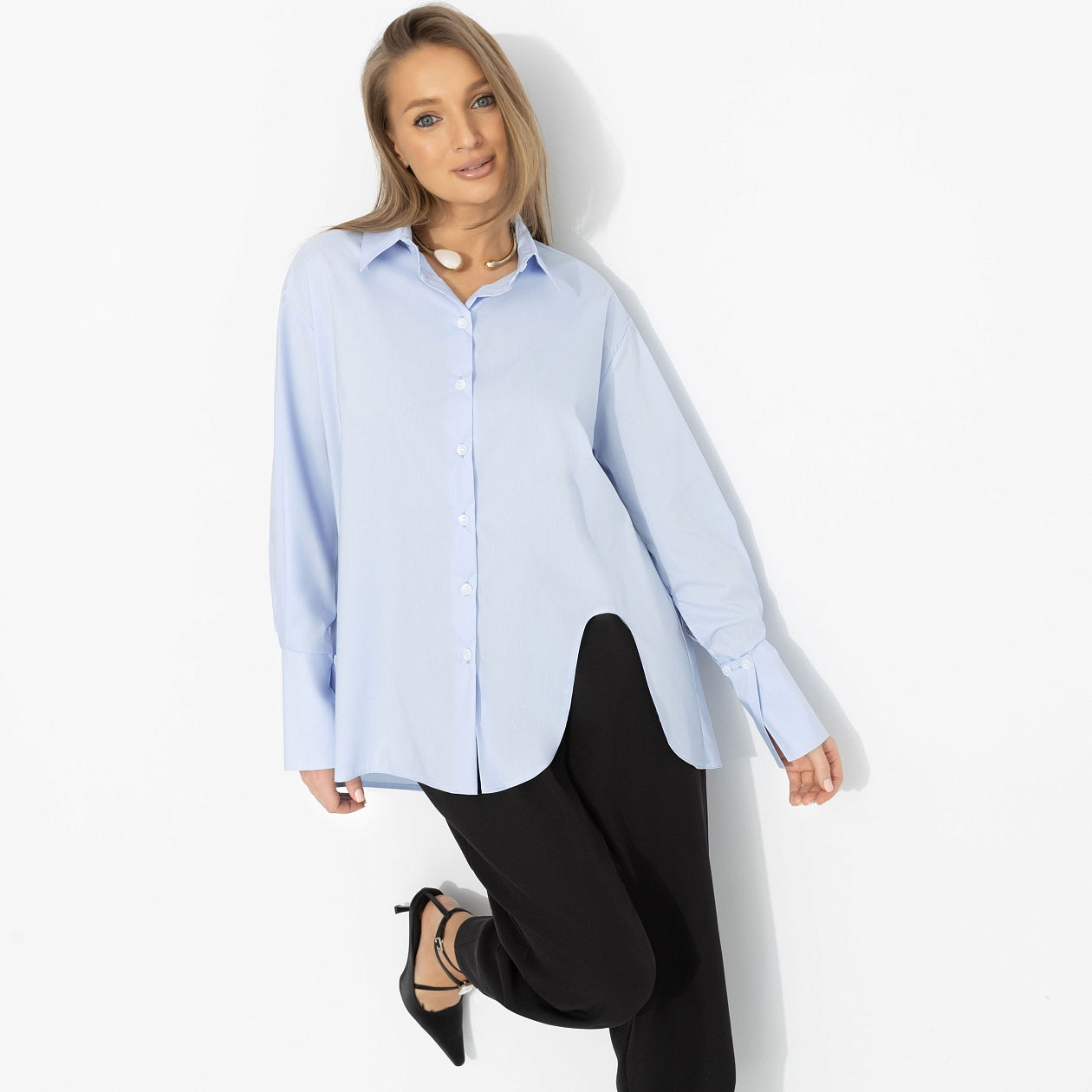 Совещание затянулось. Кто-то спорит, кто-то листает слайды. Она молча встаёт, поправляет манжету – и все мгновенно начинают слушать. Никакой драмы, просто форма работает за неё. «Давайте по существу», – и дальше уже по её правилам. Удлинённый силуэт с асимметричным вырезом, нарочито свободная посадка – в рубашке от ЧАРУТТИ соблюдён баланс структуры и движения. Натуральный хлопок дышит и держит форму. Когда слово за формой – аргументы звучат весомее.