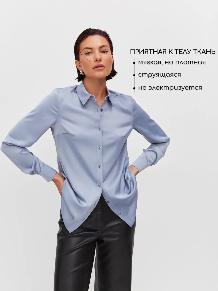 Голубая шелковая рубашка — элегантная классика в стиле олд мани с благородным атласным блеском. Модель с отложным воротником и длинным рукавом подходит для офиса, деловых встреч и вечерних образов. Универсальна: легко сочетается с пиджаком, юбкой или брюками. Шелк придает образу утонченность и ощущение роскоши. Базовая вещь, актуальная в любом гардеробе. Важно: при пошиве используется портновская ручка, следы которой исчезают после стирки или обработки паром.