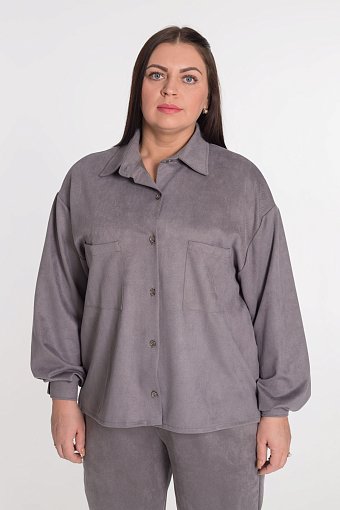 Свободный силуэт, спущенная линия плеча, на полочках карманы, в боковых швах разрезы, низ разноуровневый, рукав на манжете с застежкой на пуговицу, низ рукава заложен в складку.