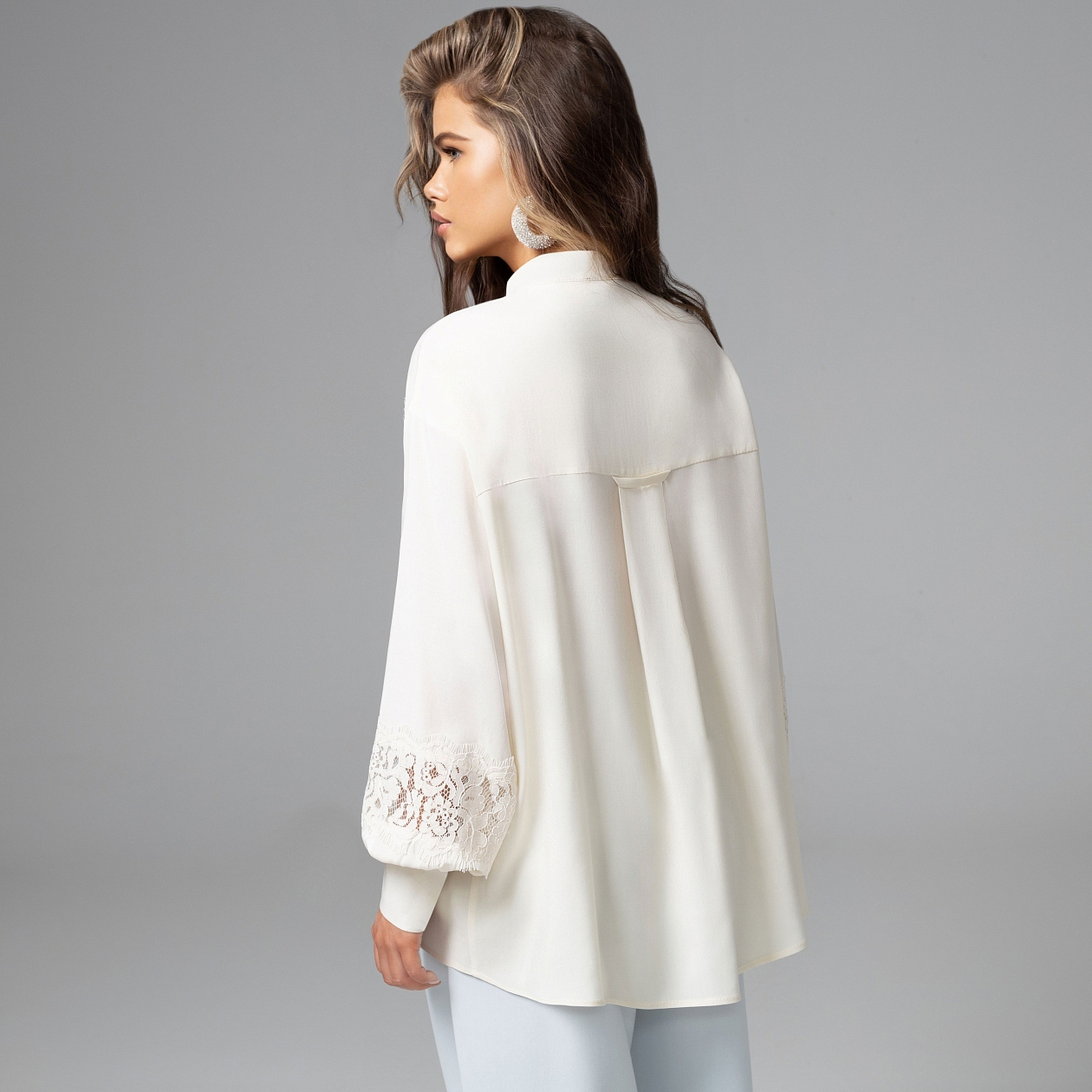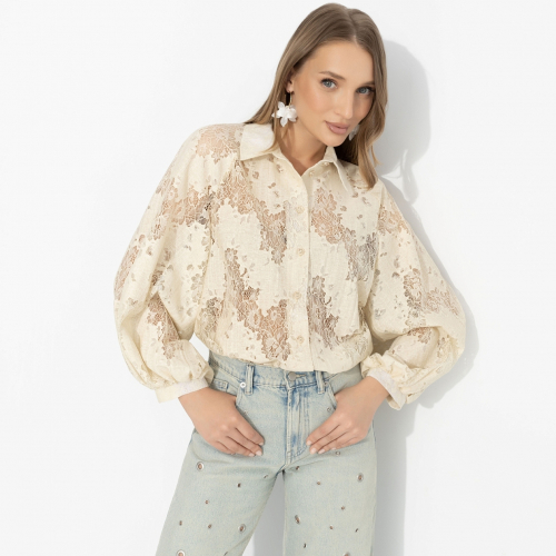В пять часов у нее дома подают чай. Фарфор тонкий, разговоры неторопливые, за окнами мягкий свет. Рубашка с кружевом идеально вписывается в такую сцену. Вискозный твил отличается благородной матовой фактурой и мягко струится при движении. Кружевные вставки по линии груди и манжетам добавляют образу утончённости и создают эффект лёгкой многослойности. Свободный силуэт позволяет носить рубашку навыпуск или заправленной. И любой спор решается в вашу пользу.