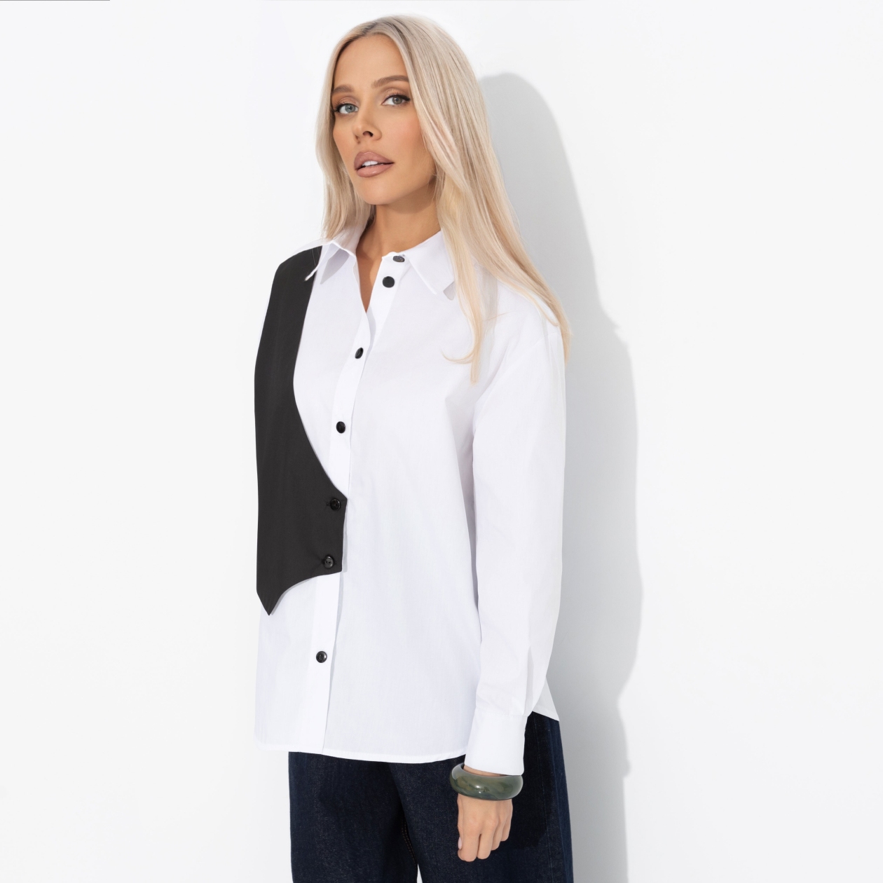 Рубашка ЧАРУТТИ – манифест скрытых амбиций и силы, которую ты носишь с собой каждый день. Её нетривиальный крой — архитектурный проект твоего будущего «я», где асимметричные детали и смелые линии символизируют отказ от шаблонов. В ней ты чувствуешь, как границы между мечтой и реальностью стираются. Рубашка удлиненная прямого силуэта. Акцентные детали по одной стороне изделия прошита. Имитация части жилета. Изделие застегивается на пуговицы контрастного цвета. Можно носить в заправленном виде. Ошибка при загрузке данных! (https://charutti.ru/upload/video-site/00000012148_video_site.mp4)