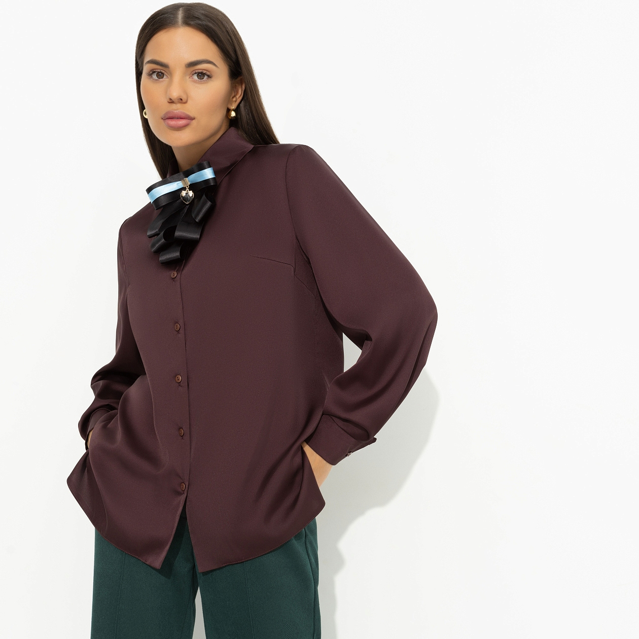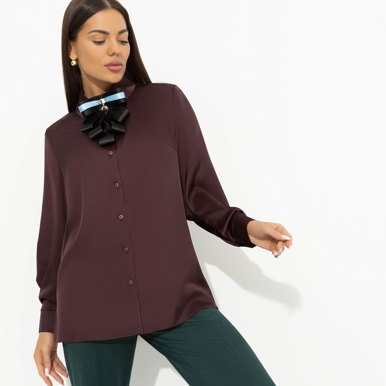 Рубашка «Лабиринт обещаний» – не просто изделие, а целая история. Та самая, в которой обещания не заканчиваются. Акцент на деталь и каждый изгиб ткани – новый поворот. В этом коричневом оттенке легко заблудиться… но стоит ли искать выход? Рубашка классического кроя, свободная. Изделие удлиненное. Хорошо смотрится в заправленном виде и навыпуск. Объемный галстук-бант – съемный элемент. Бант из атласной ленты, дополнен декором в виде сердца.