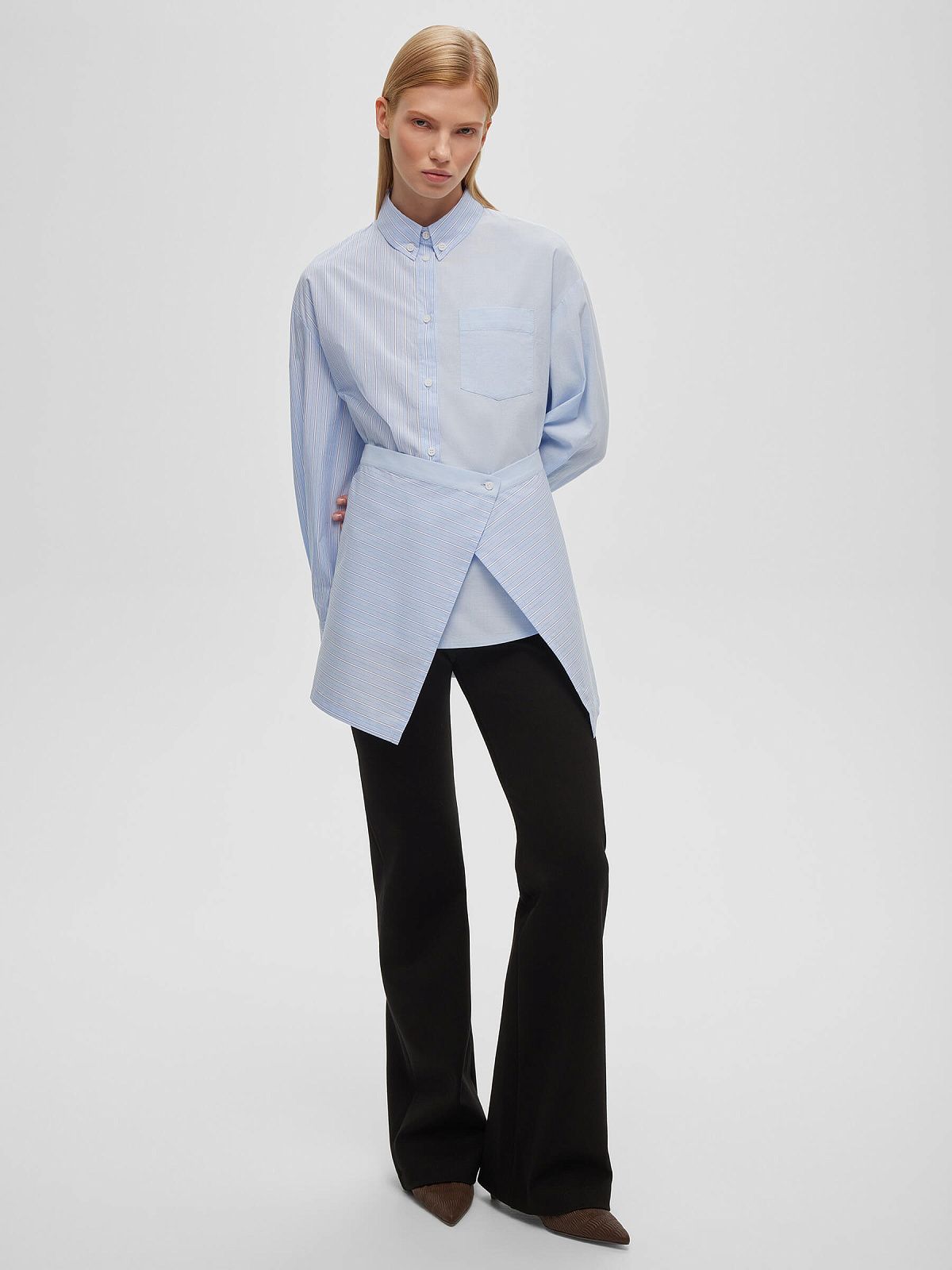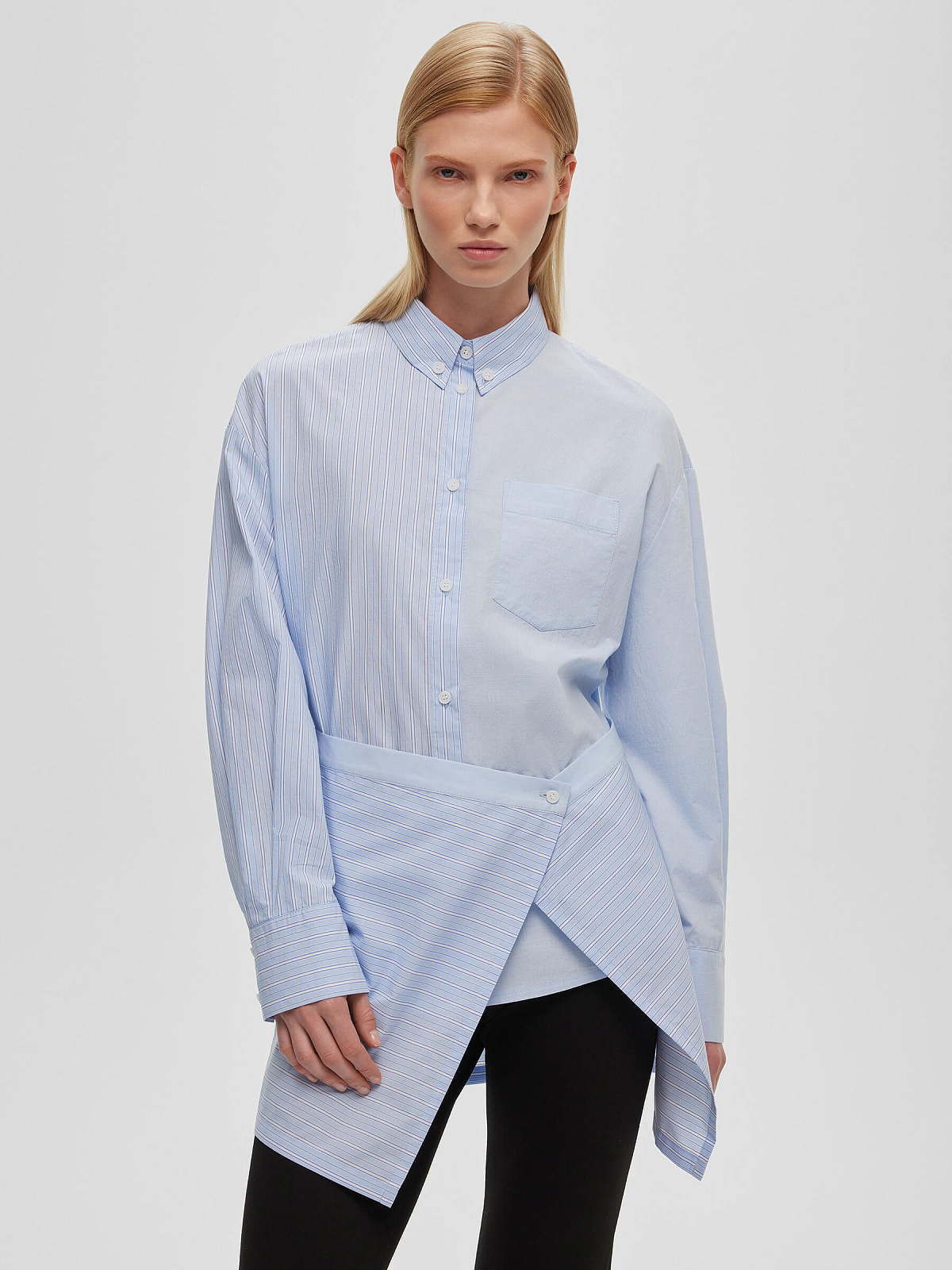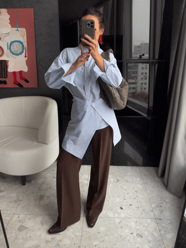Рубашка колор-блок с баской 0213, светло-голубой