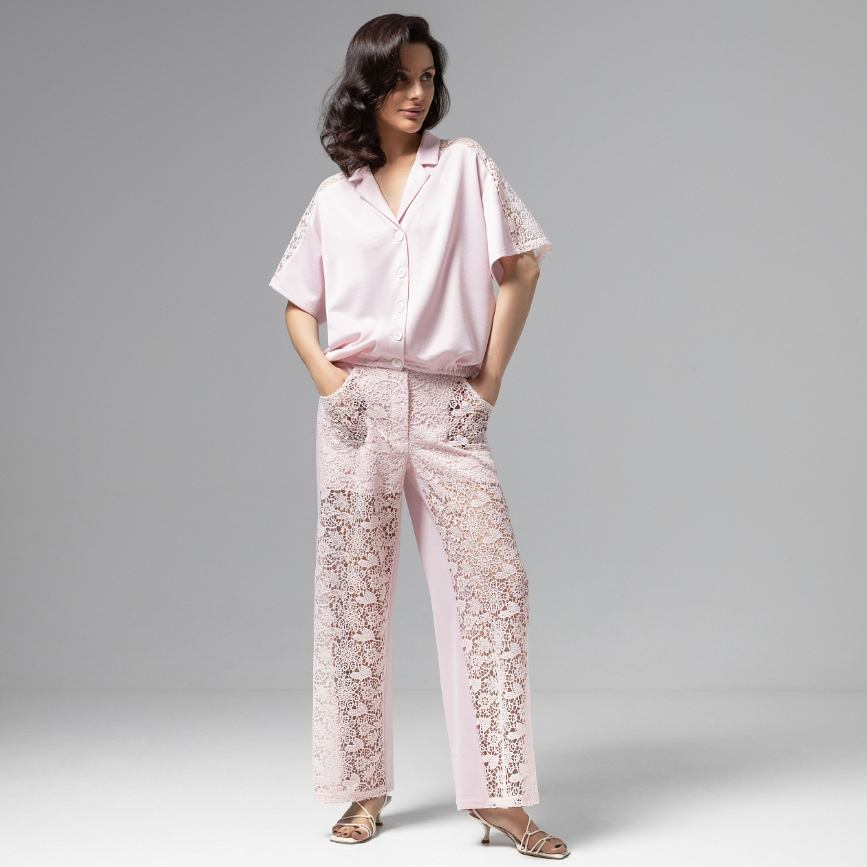 Состав: Трикотаж жаккард, кружево (65% п/э, 30% вискоза, 5% спандекс)
