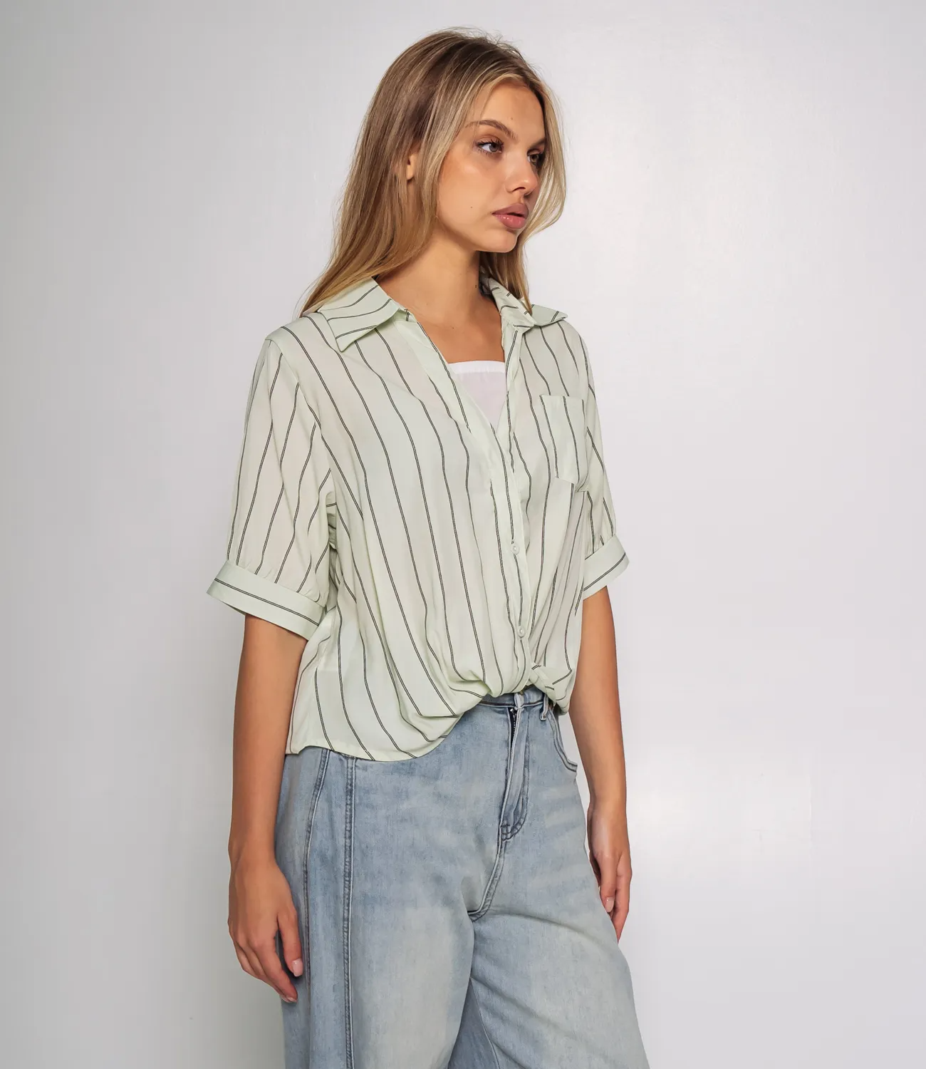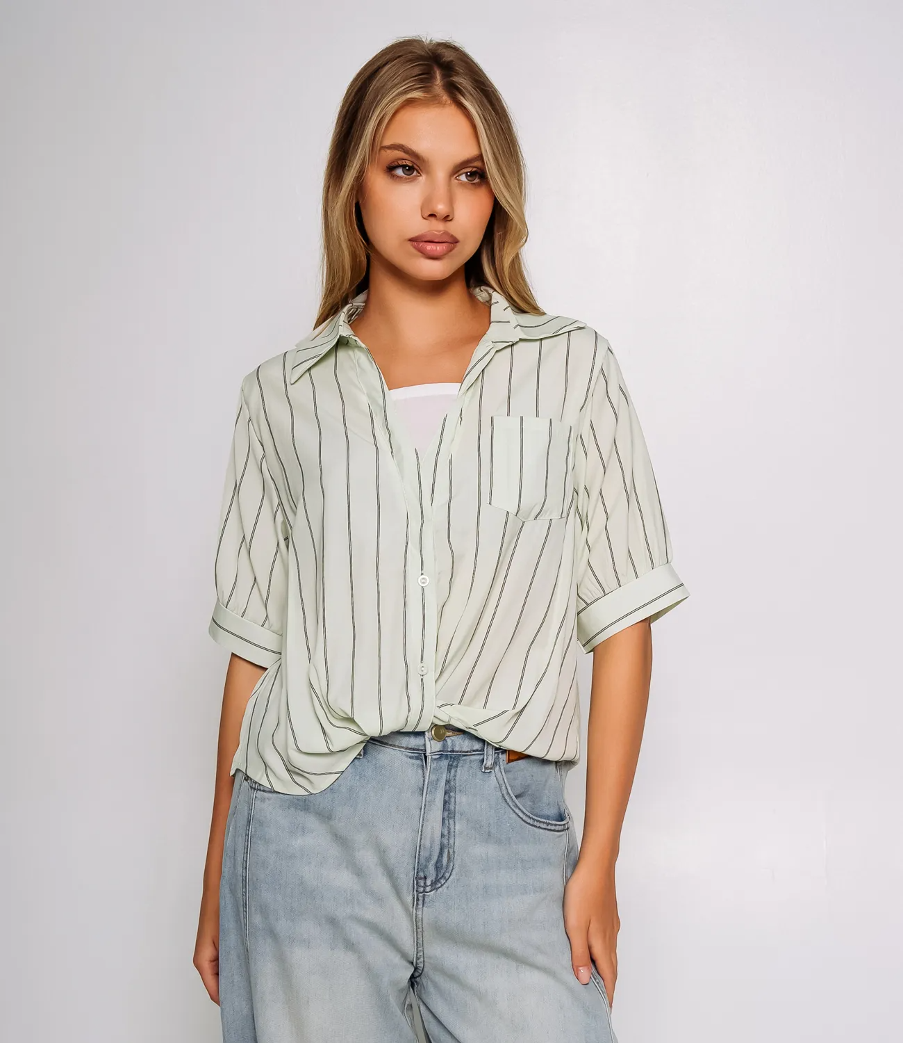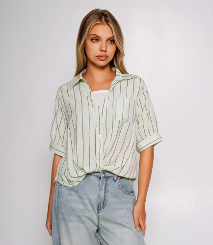 Рубашка — это ключевой элемент гардероба, который способен подчеркнуть уникальность и стиль каждой женщины. Эта модель станет настоящим хитом среди ваших покупателей, благодаря своему современному дизайну и высокому качеству. Изготовленная на 100% из легкой ткани с вертикальным узором в виде тонких полосок, рубашка дарит комфорт и позволяет коже дышать в любое время года. Свободный крой и короткие рукава, заканчивающиеся широкими манжетами, делают рубашку идеальной для создания непринужденного и стильного образа. Классический воротник и застежка на пуговицы придают изделию аккуратность и элегантность. Накладной карман на груди добавляет детали и функциональности, завершая этот привлекательный образ. Необычный нюанс — рубашка застегнута не полностью, что создает расслабленный и модный вид. Нижняя часть модели аккуратно присборена или может быть заправлена, добавляя динамики и интересного эффекта в вашем наряде. Эта рубашка станет отличным выбором для повседневной носки, идеально сочетаясь как с джинсами, так и с брюками или юбками. Она привлечет внимание тех, кто ценит сочетание стиля и комфорта. Мы предоставили на сайте таблицу размеров, чтобы ваши клиенты могли легко выбрать идеальный размер и не сомневаться в своем выборе. Предложенная нами цена является доступной для оптовых закупок, что делает эту рубашку замечательным дополнением вашего ассортимента. Не упустите возможность предложить своим покупателям стильную рубашку, которая подчеркнет их индивидуальность и поможет создать множество образов! Рост модели 168 см., 89-63-90.