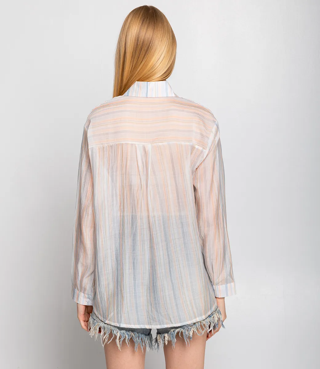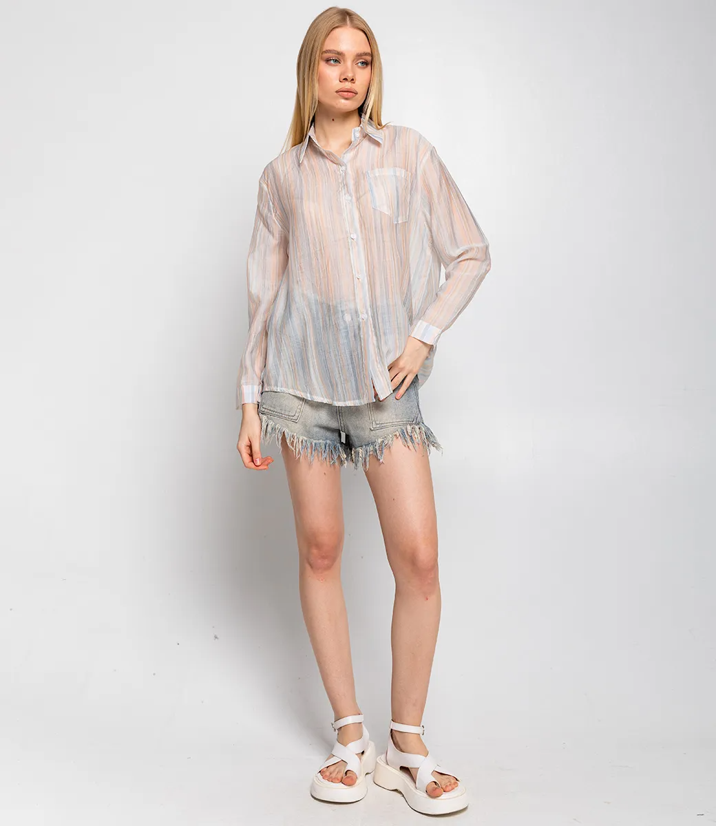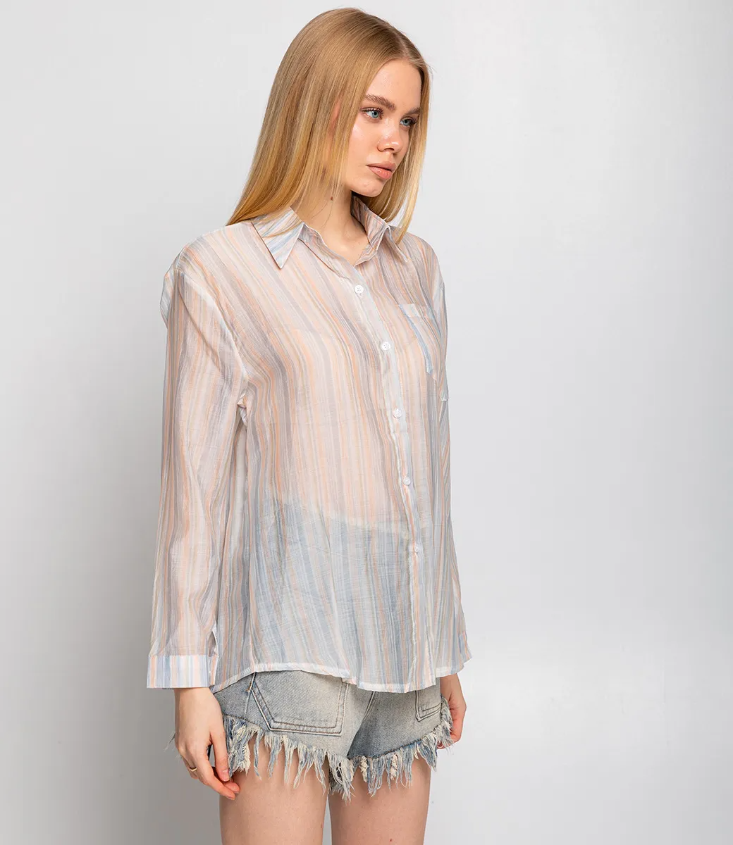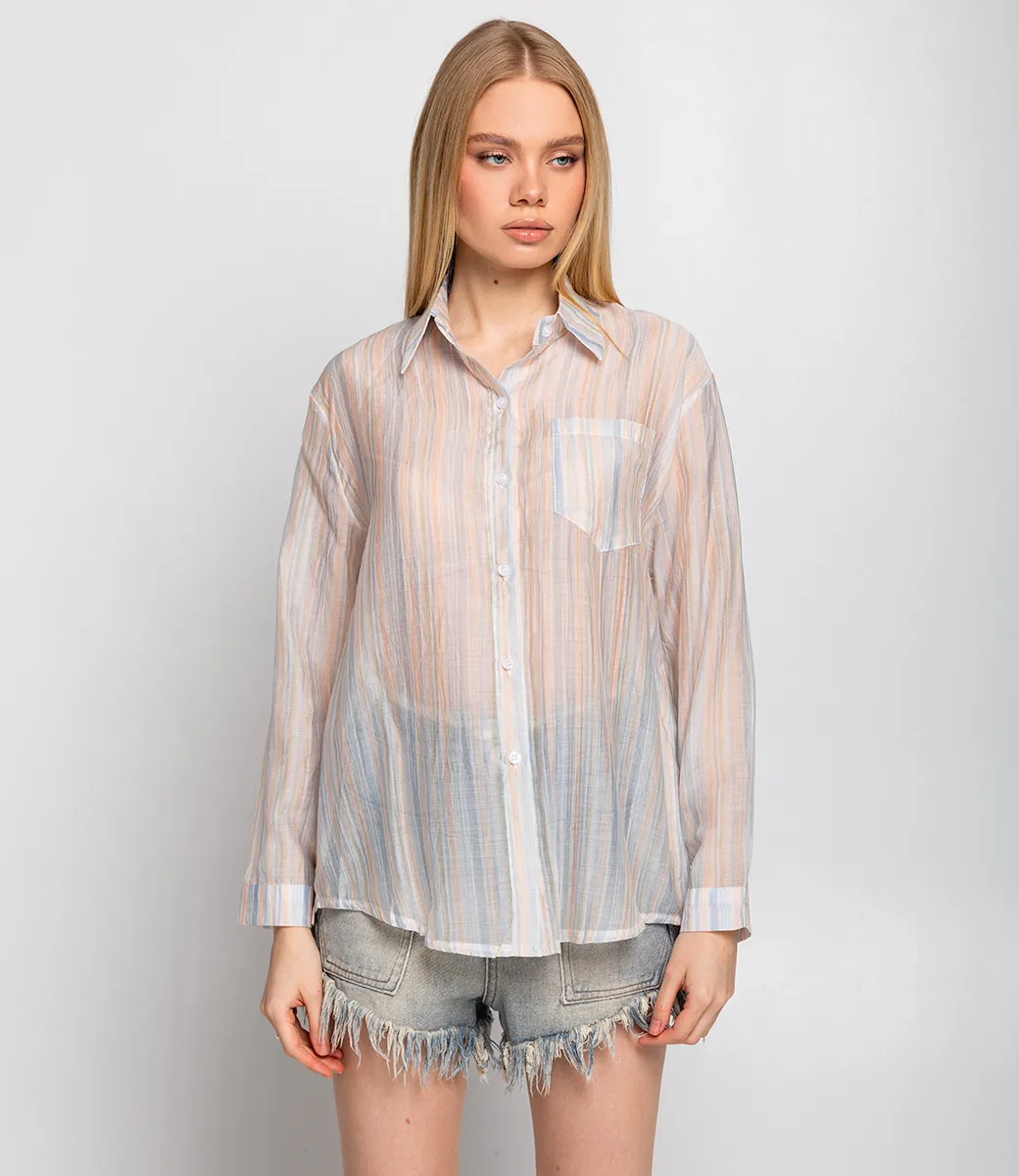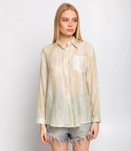 Рубашка – это вещь, которая подчеркивает привлекательность каждой женщины. Рубашка свободного кроя с длинными рукавами и классическим воротником. Изготовлена из легкой и полупрозрачной ткани. Рубашка имеет классический покрой с прямым силуэтом, что позволяет свободно сочетать её с различными предметами гардероба. Небольшой нагрудный карман с одной стороны, который добавляет практичности и служит стильным акцентом. Полосатый узор в нежных пастельных тонах, что добавляет игривости образу и делает рубашку легко комбинируемой с другими цветами. Для пошива использована ткань 100% полиэстер, которая характеризуется отличным качеством. Даже после множества стирок рубашка не утратит первоначальной привлекательности. Вы будете носить ее с радостью. Обратите внимание на цвет и клетчатый принт. Он полностью соответствует фотографии на сайте. Чтобы вы были уверены в размере, мы представили на странице таблицу. Воспользовавшись ею, вы сможете самостоятельно обмерить себя и удостовериться. Установленная нами цена является доступной. Не откажите себе в удовольствии быть стильной! Рост модели 173, 84-58-89.