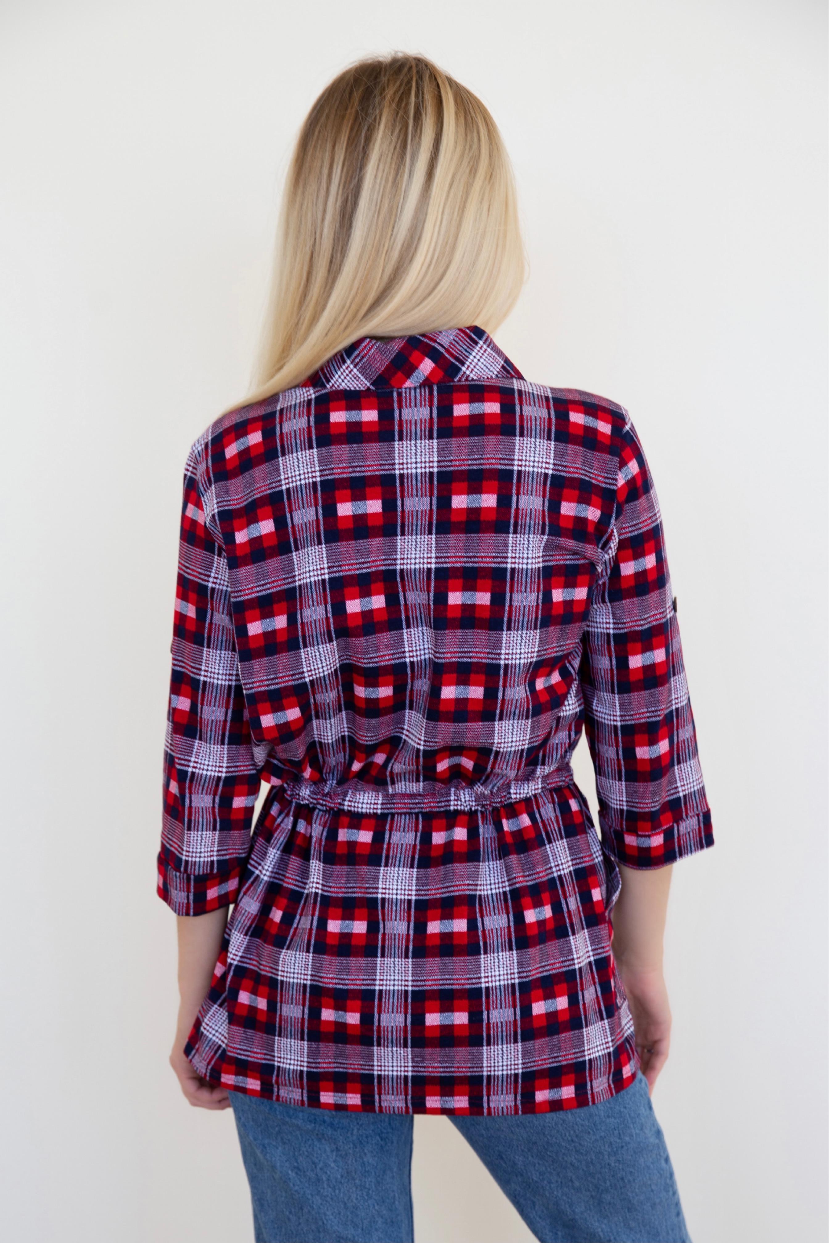 Такая рубашка придаст Вашему образу нотку романтичности. Сочетание цветового решения в клетке , интересное дизайнерское решении на любую фигуру. Изделие из натурального хлопка прекрасно подойдет для повседневной носки.