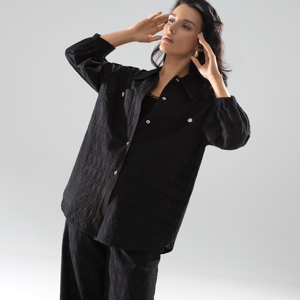 Эта рубашка — истинный пик элегантности, который не оставит вас равнодушным. Оптимальный выбор для утонченнейших образов, она выполнена из изысканного батиста с вышивкой и легкого штапеля. Эти ткани дарят невероятное ощущение комфорта и прохлады, но вместе с тем, выглядят роскошно и дорого. Покупка оптом позволит вам предложить вашим клиентам не только практичные, но и по-настоящему стильные решения для их гардероба. Каждому человеку хочется выделяться, и эта рубашка обеспечит именно тот эффект. С ней можно будет создать как повседневные наряды, так и более торжественные образы, что делает её незаменимой весной и летом.
